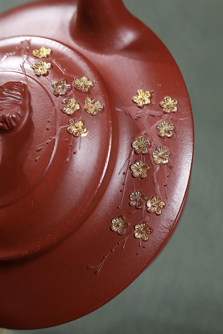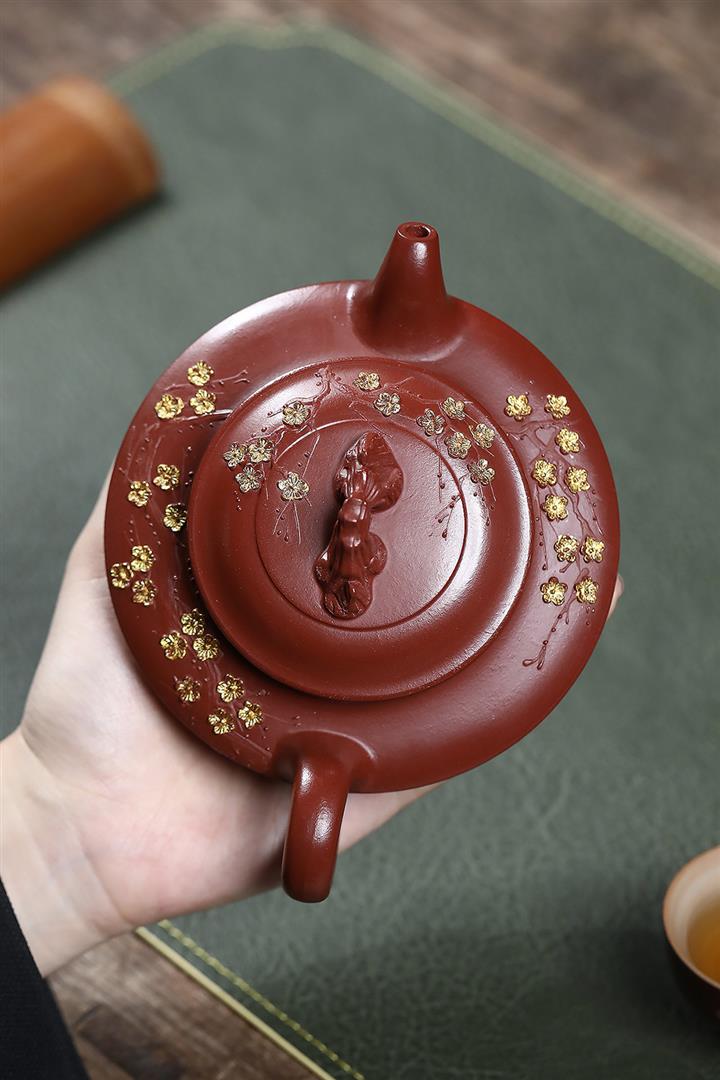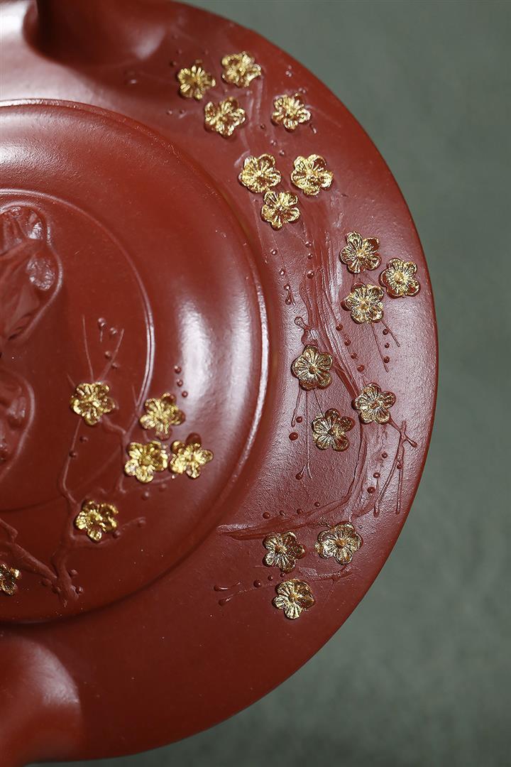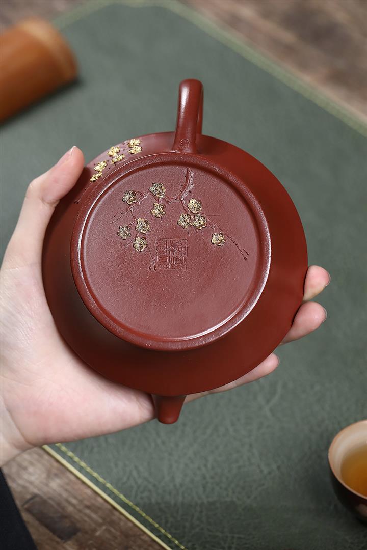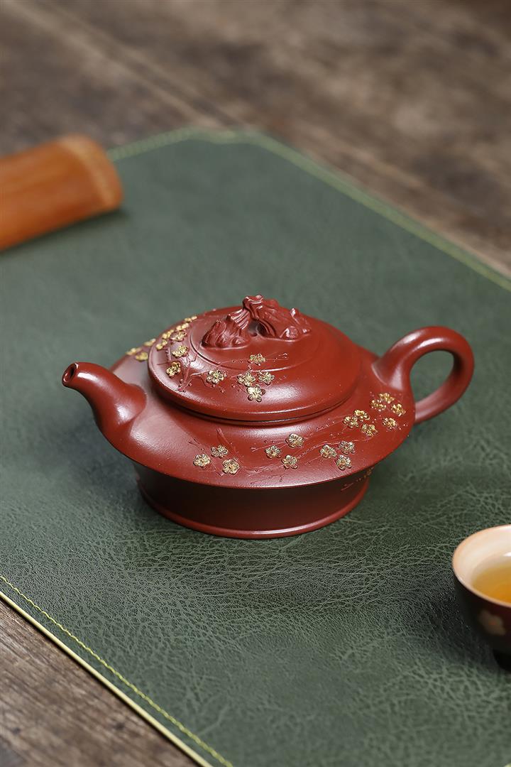 原礦大紅袍描金觀山水扁茶壺POT7366