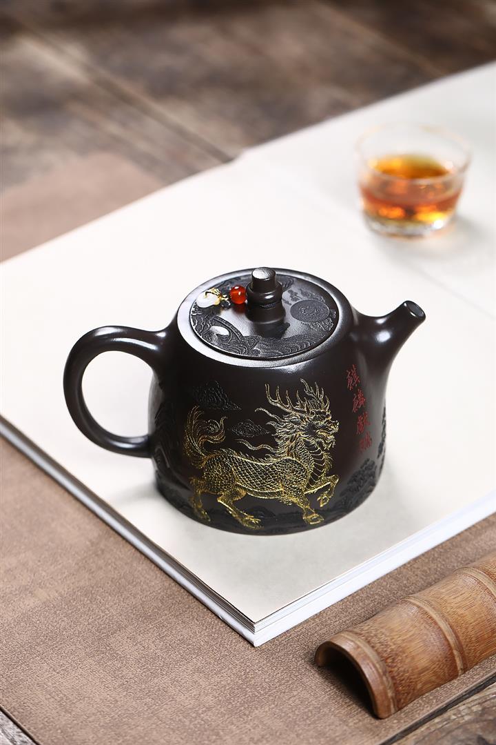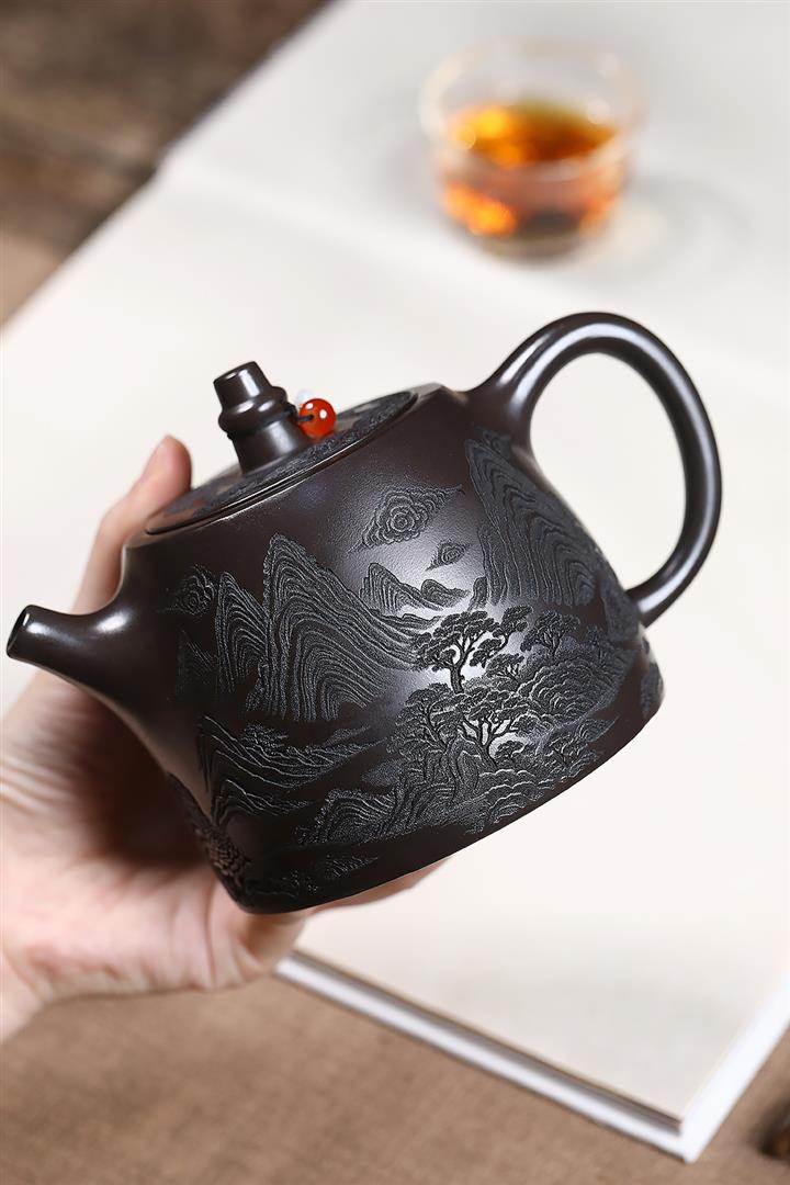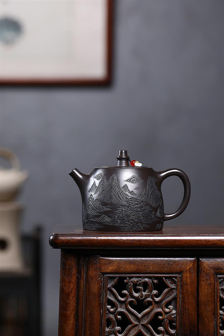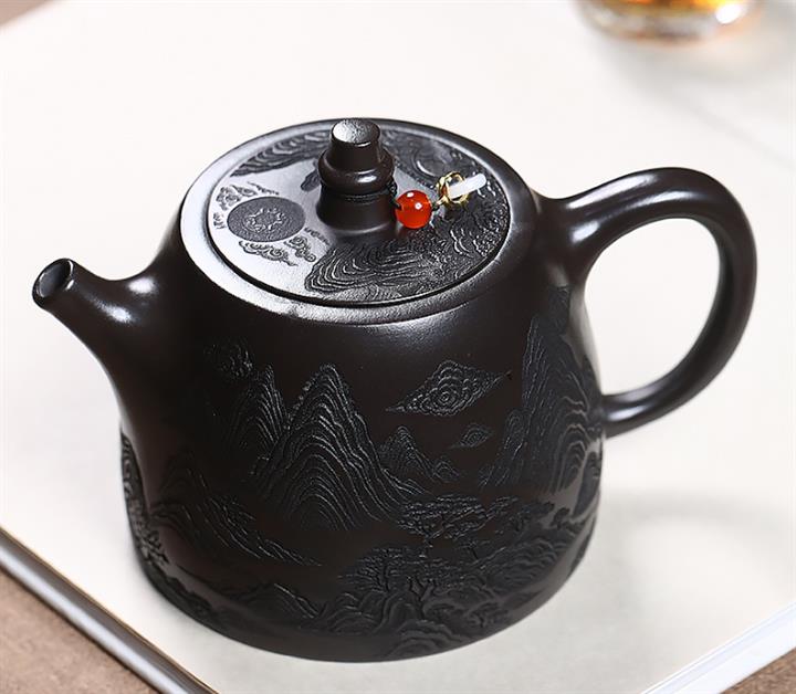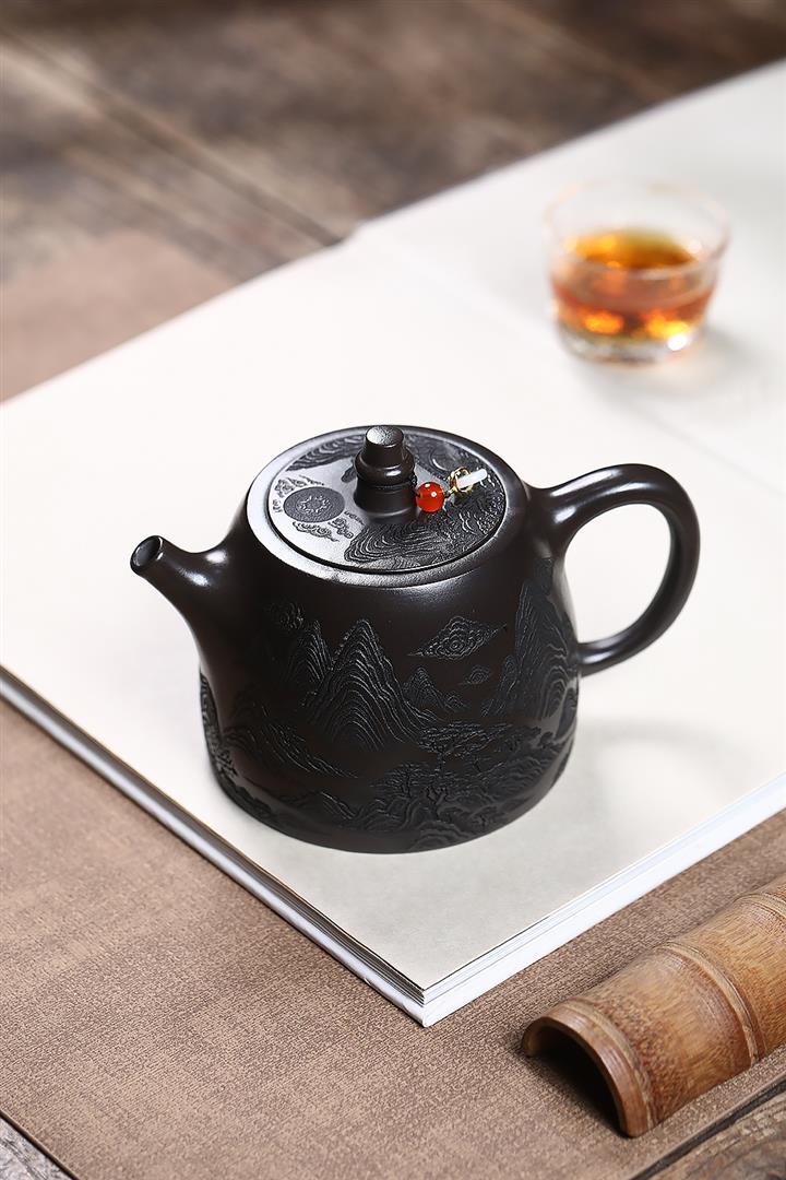 原礦玄鐵石黃山水仿古茶壺POT7370