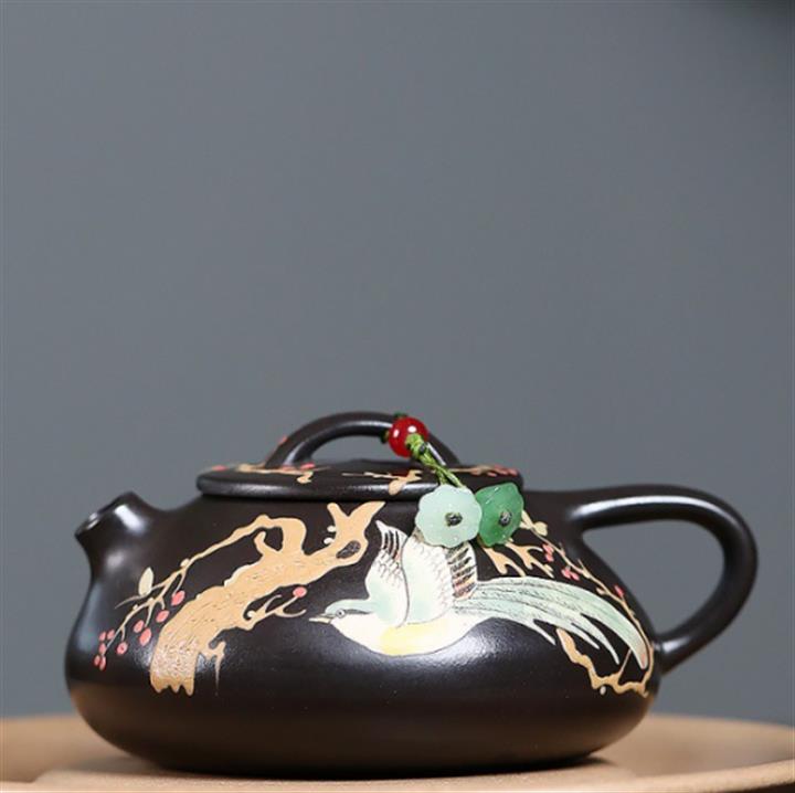 原礦黑朱泥泥繪花鳥憨瓢茶壺POT7426