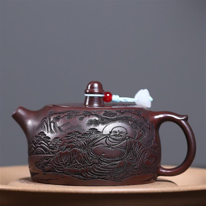 原礦龍血砂滿刻山水水平茶壺POT7419