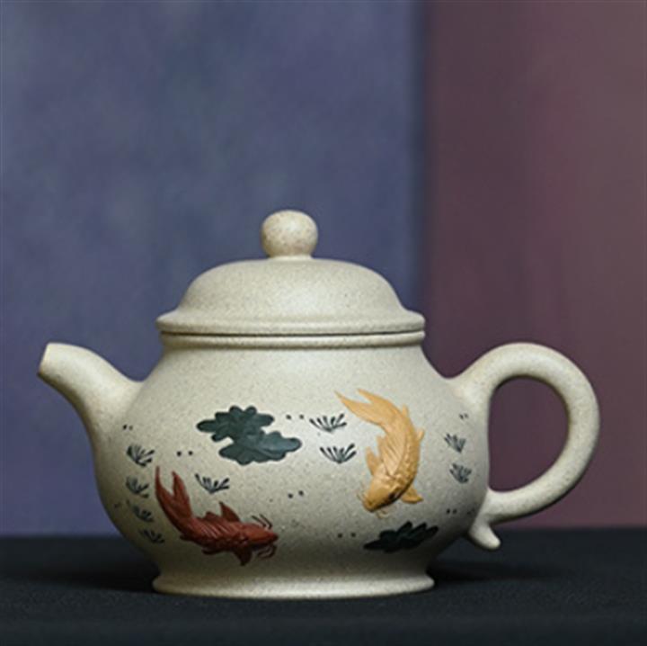 原礦朱泥還原燒琺瑯彩描金掇只茶壺POT7421