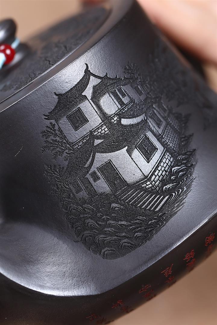 原礦石黃泥滿刻仙鶴龍蛋茶壺POT7409
