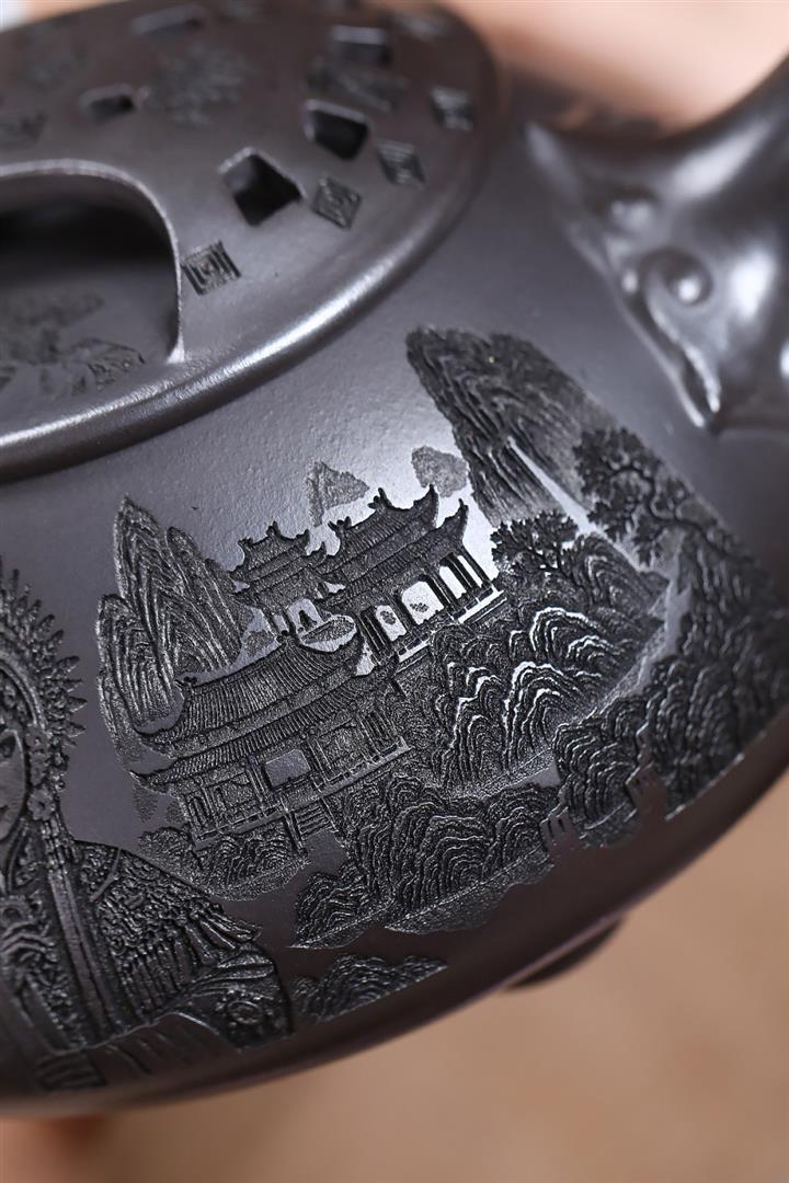 原礦沈香段清供碗玉刻繪茶壺POT7437