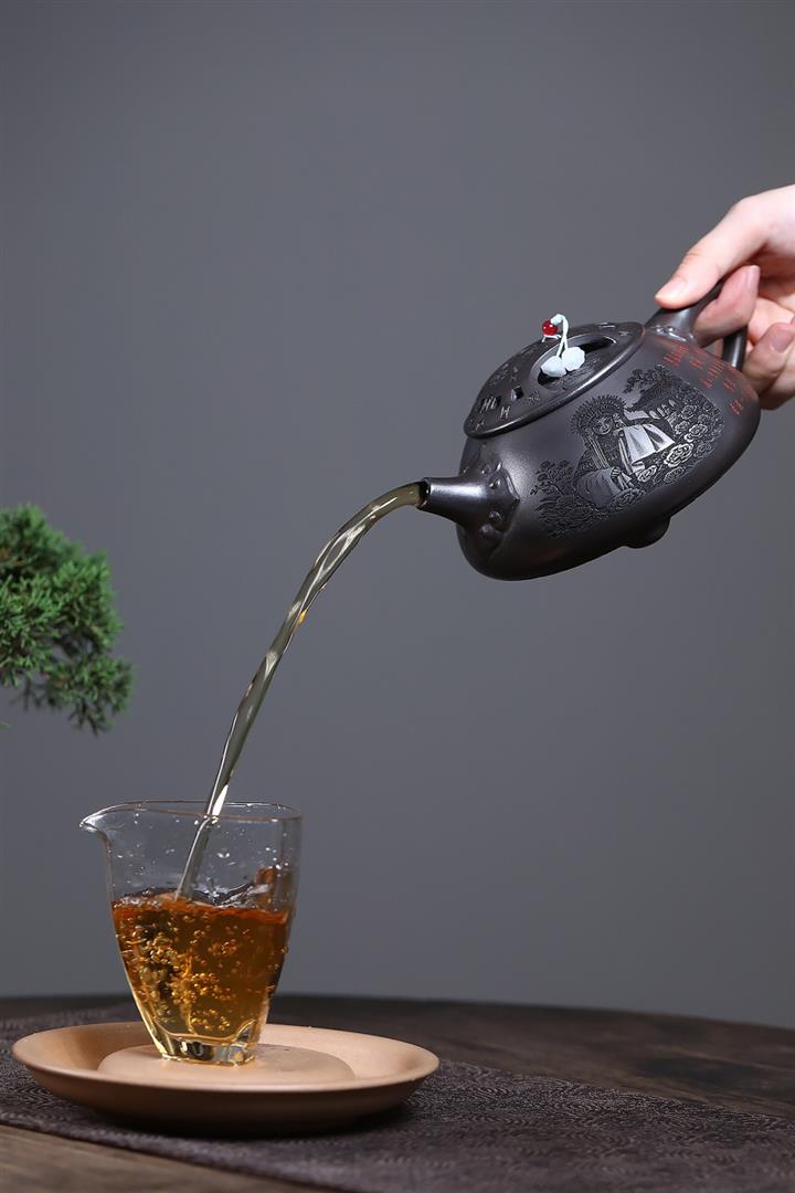 紫砂使用越久,壺身色澤越發光亮照人,氣韻溫雅。紫砂壺長久使用器身會因撫摸擦拭,變得越發溫潤光澤!