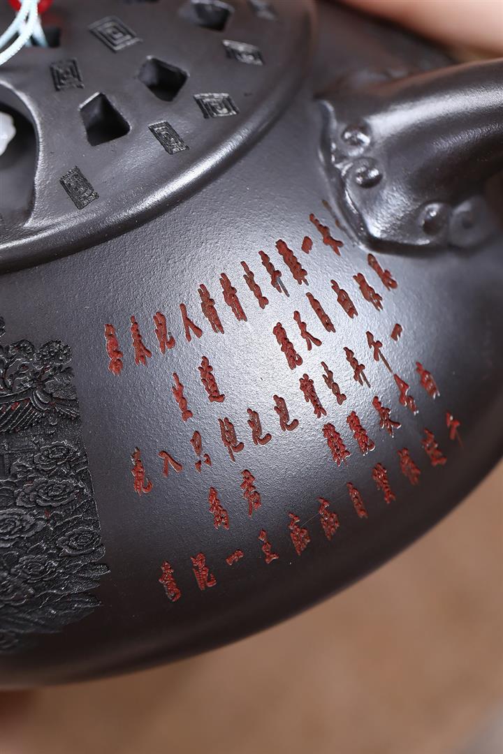 【作品介紹】作品深蘊內涵,做工細致典雅,型用完備,器形端莊穩重,比例協調,結構嚴謹,泥色潤澤。