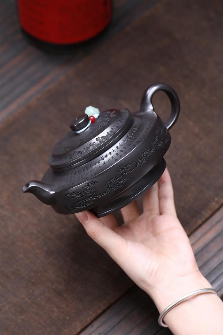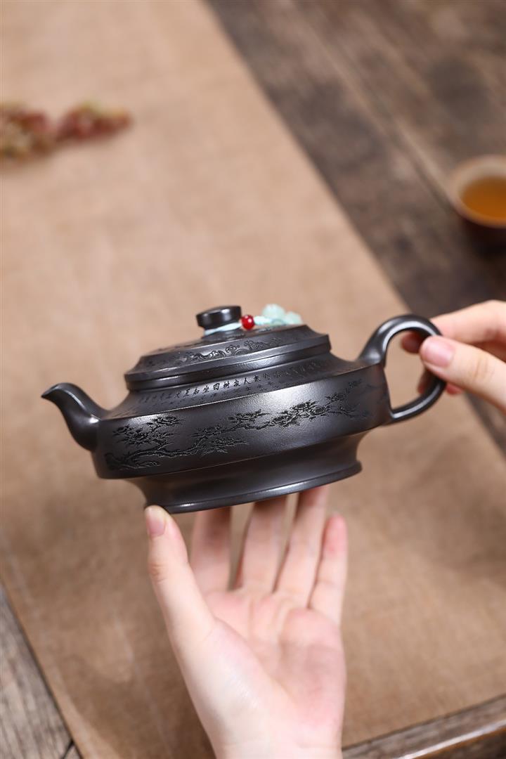紫砂使用越久,壺身色澤越發光亮照人,氣韻溫雅。紫砂壺長久使用器身會因撫摸擦拭,變得越發溫潤光澤!