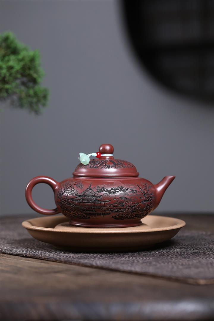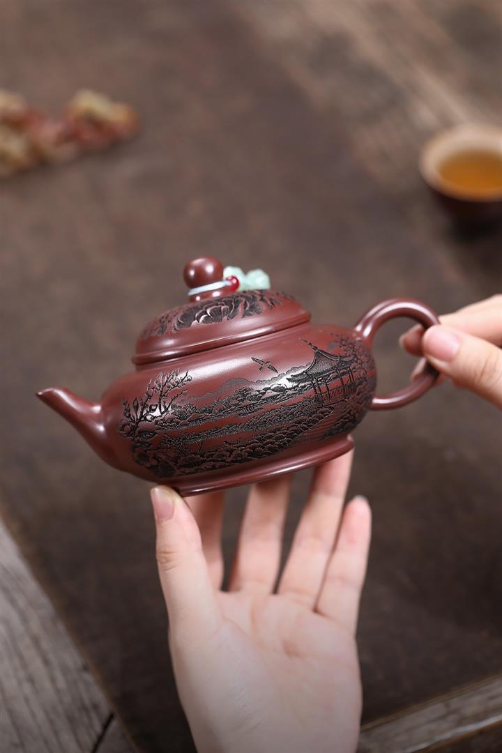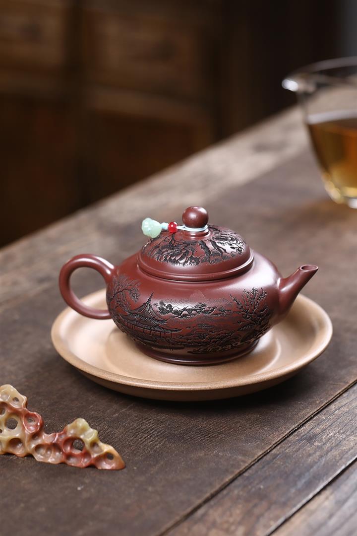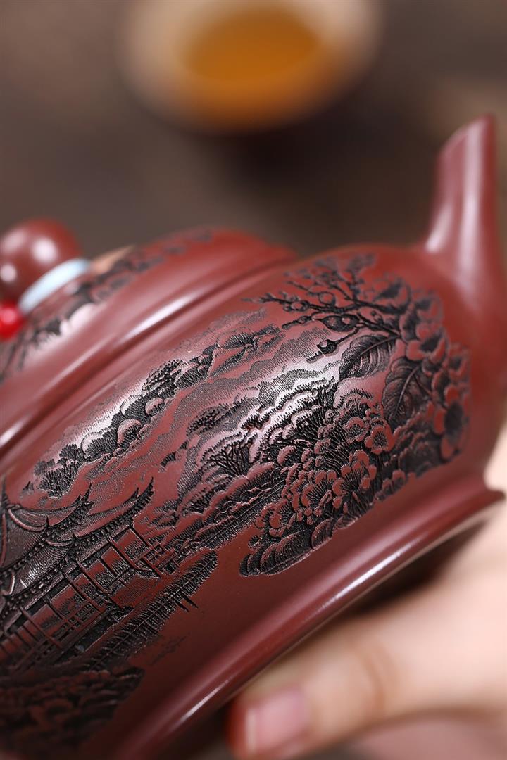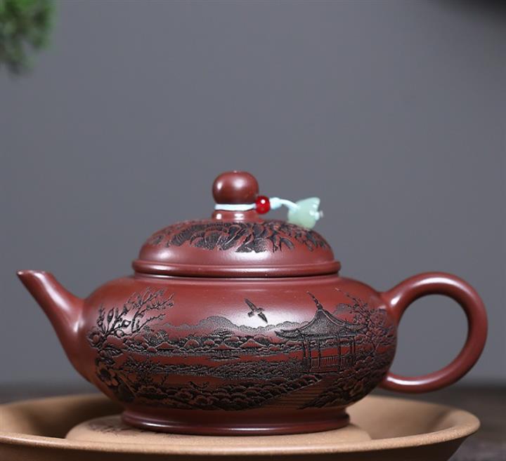 原礦龍血砂滿刻山水水平茶壺POT7419