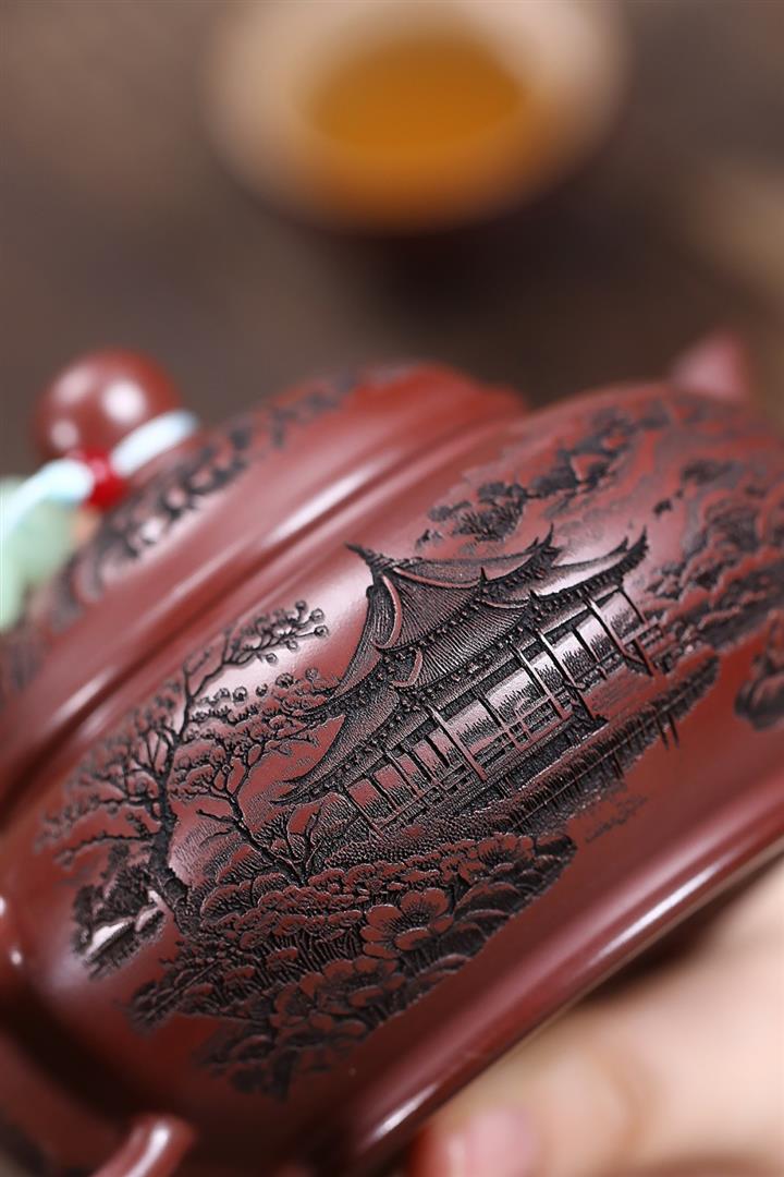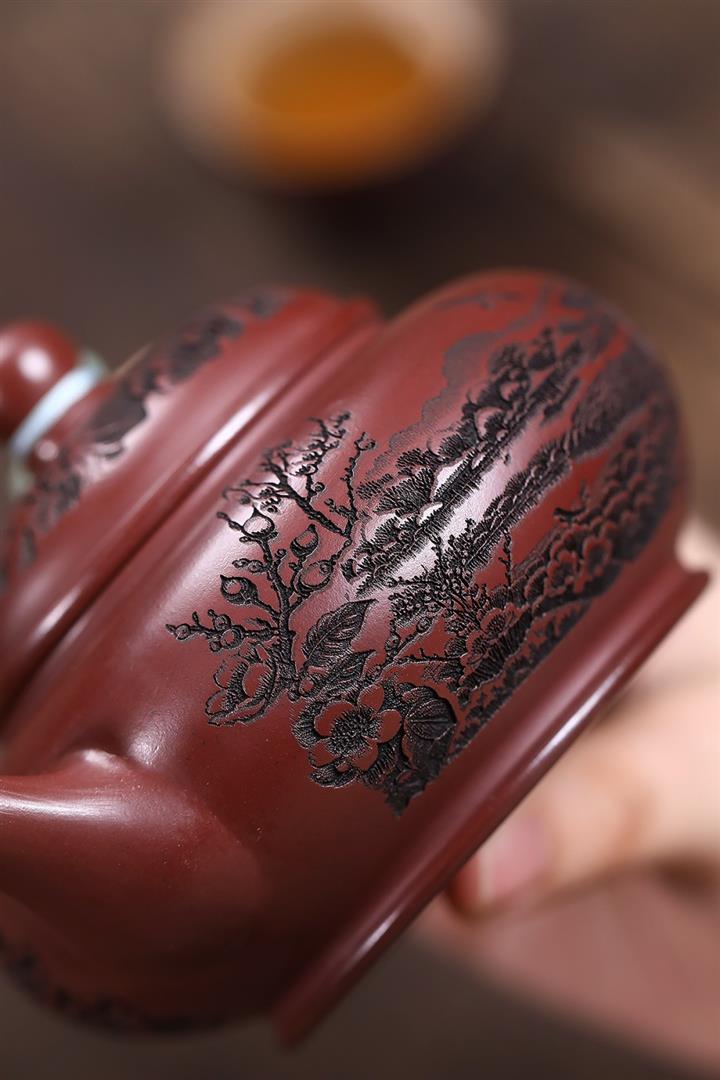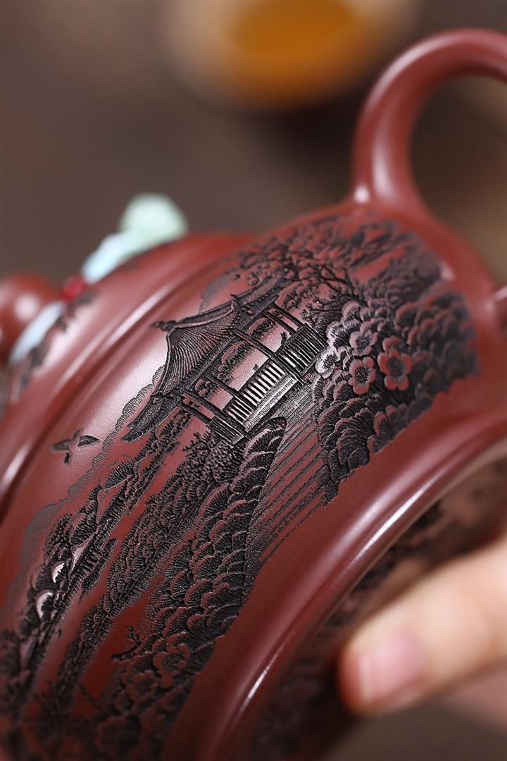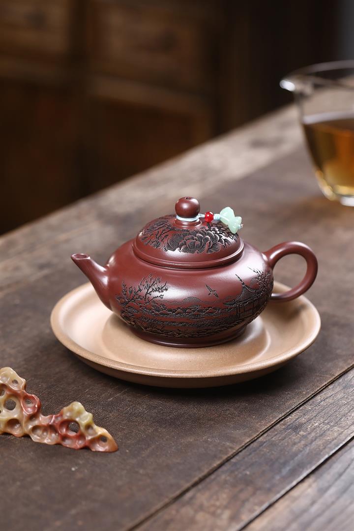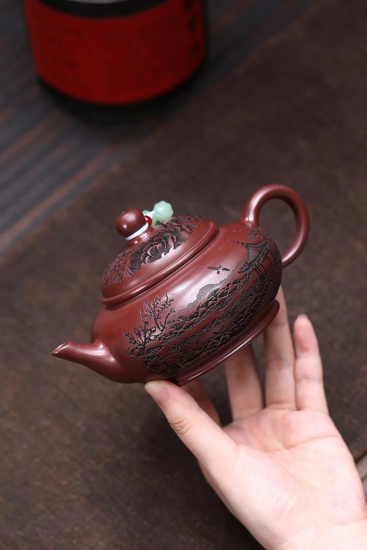 原礦龍血砂滿刻山水水平茶壺POT7419