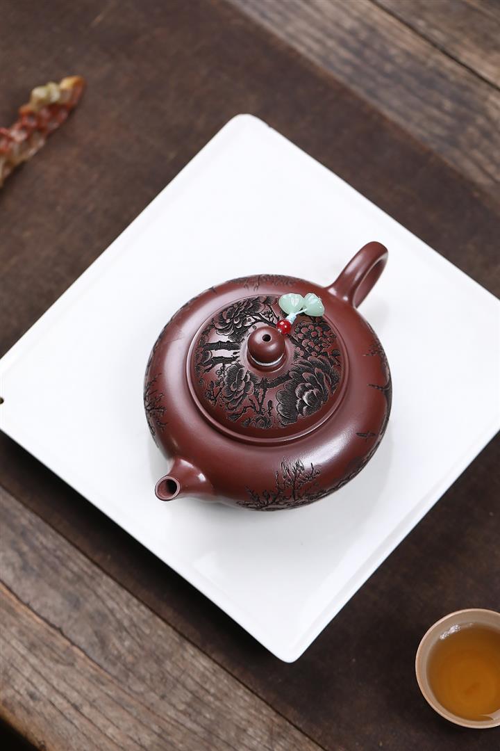 原礦龍血砂泥韶華花鳥文人茶壺POT7465