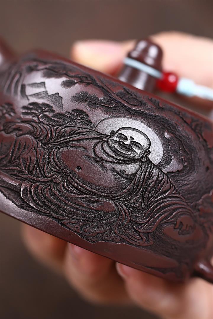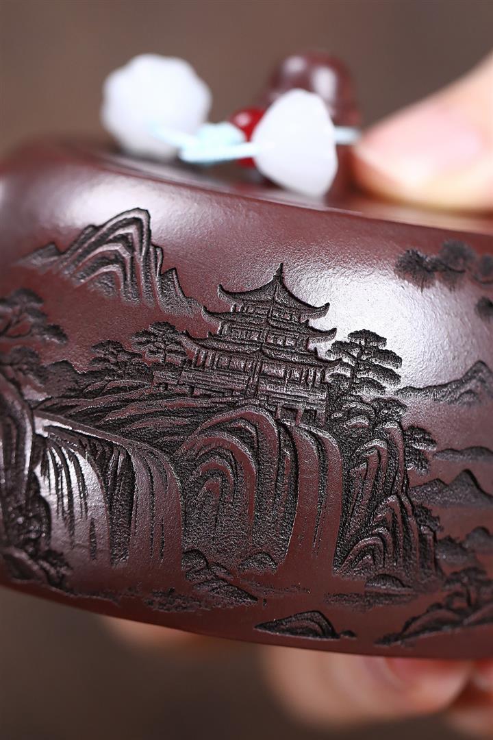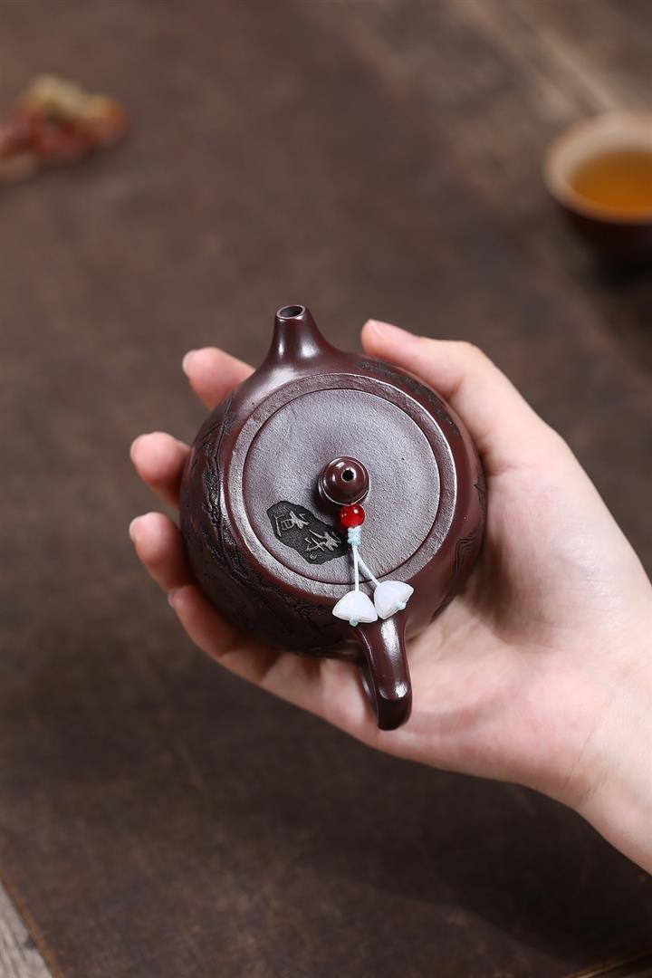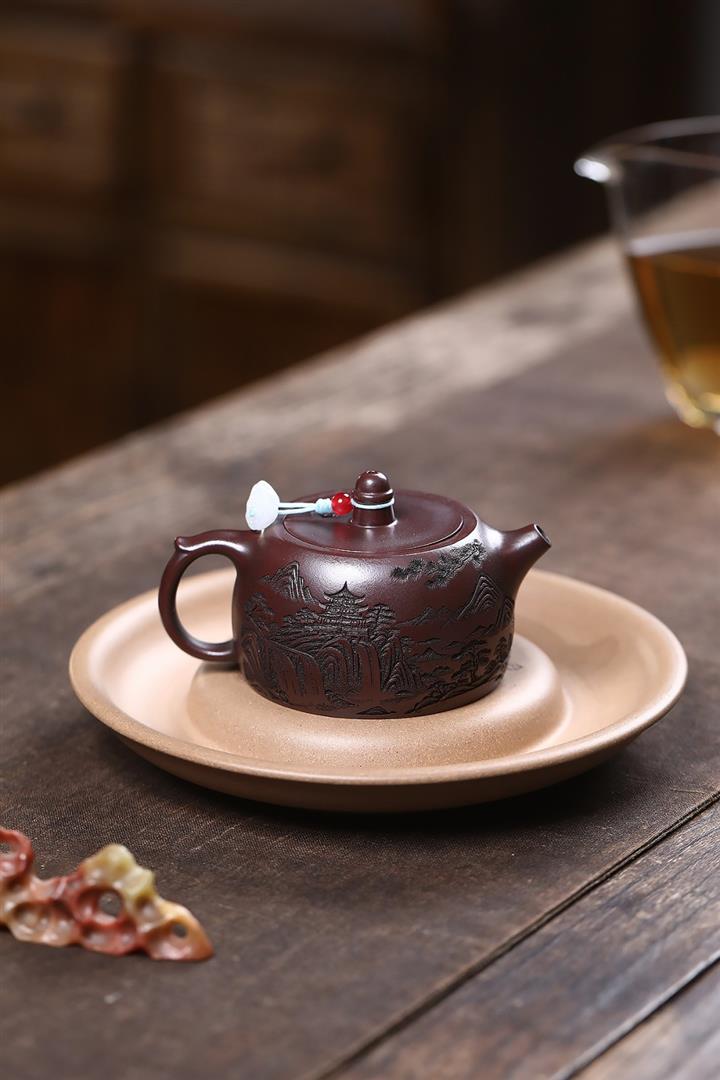 紫砂使用越久,壺身色澤越發光亮照人,氣韻溫雅。紫砂壺長久使用器身會因撫摸擦拭,變得越發溫潤光澤!