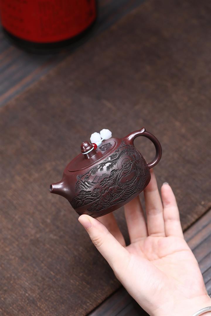 原礦龍血砂泥韶華花鳥文人茶壺POT7465