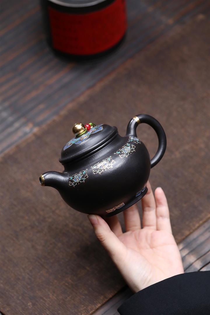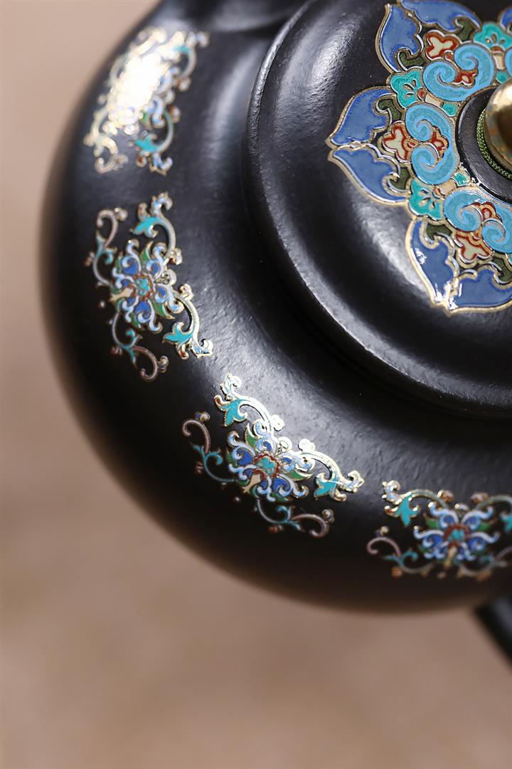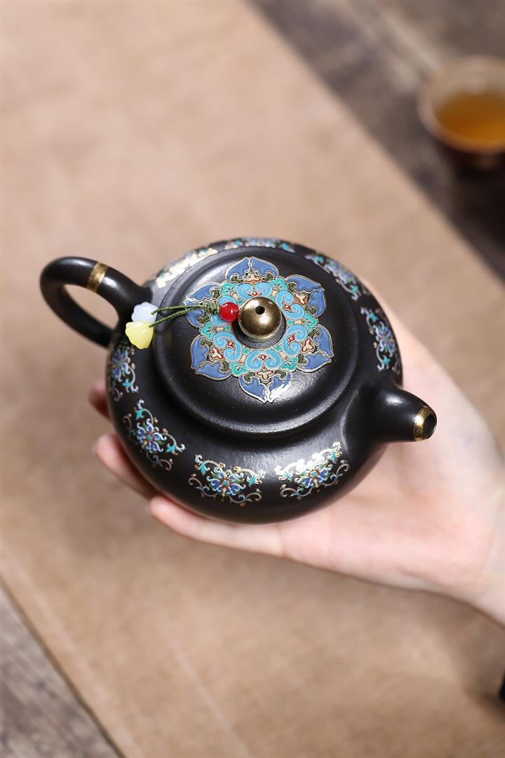 原礦朱泥還原燒琺瑯彩描金掇只茶壺POT7421