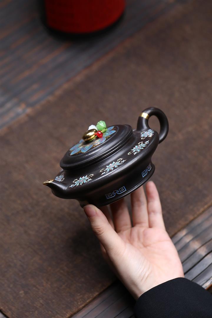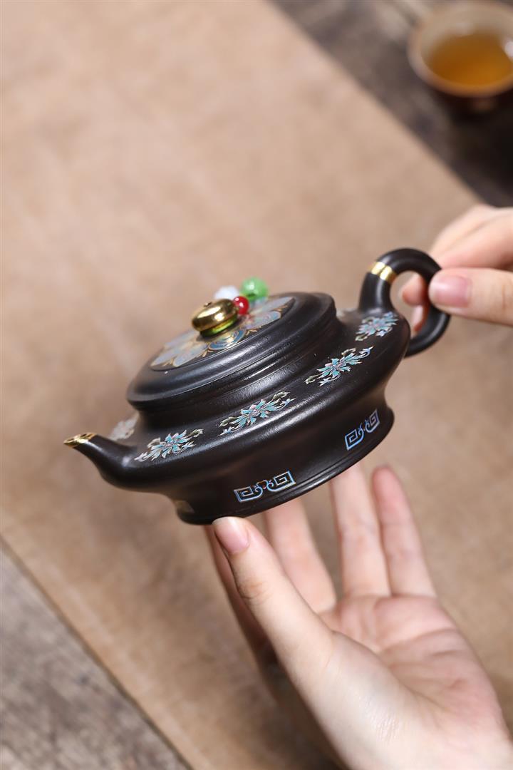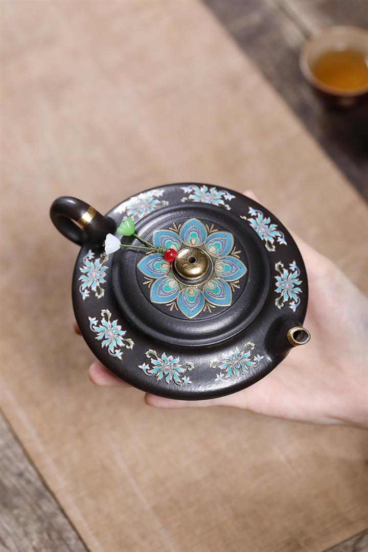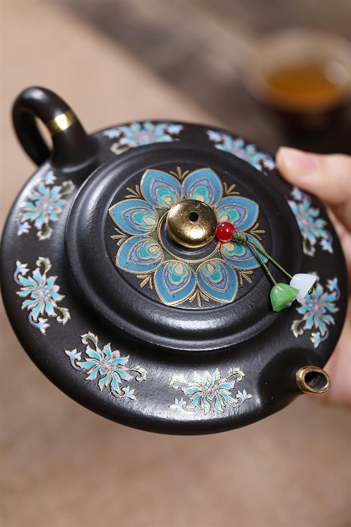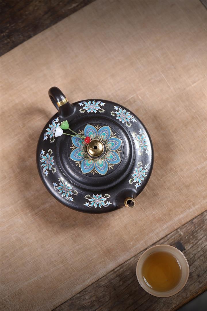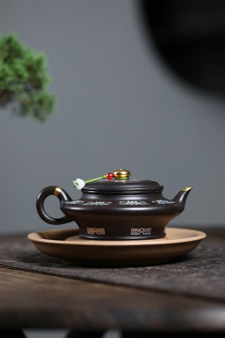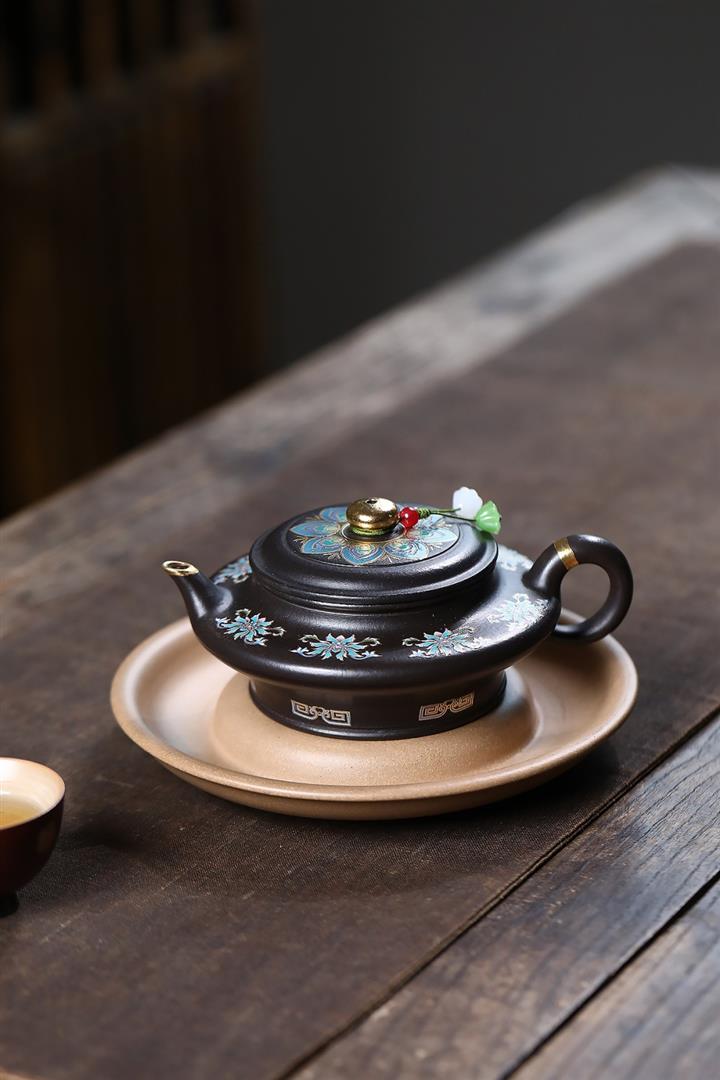 原礦朱泥琺瑯彩描金桑盤茶壺POT7424