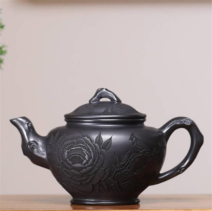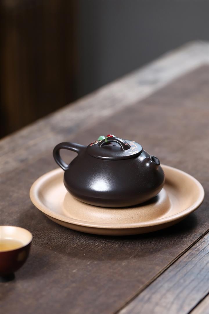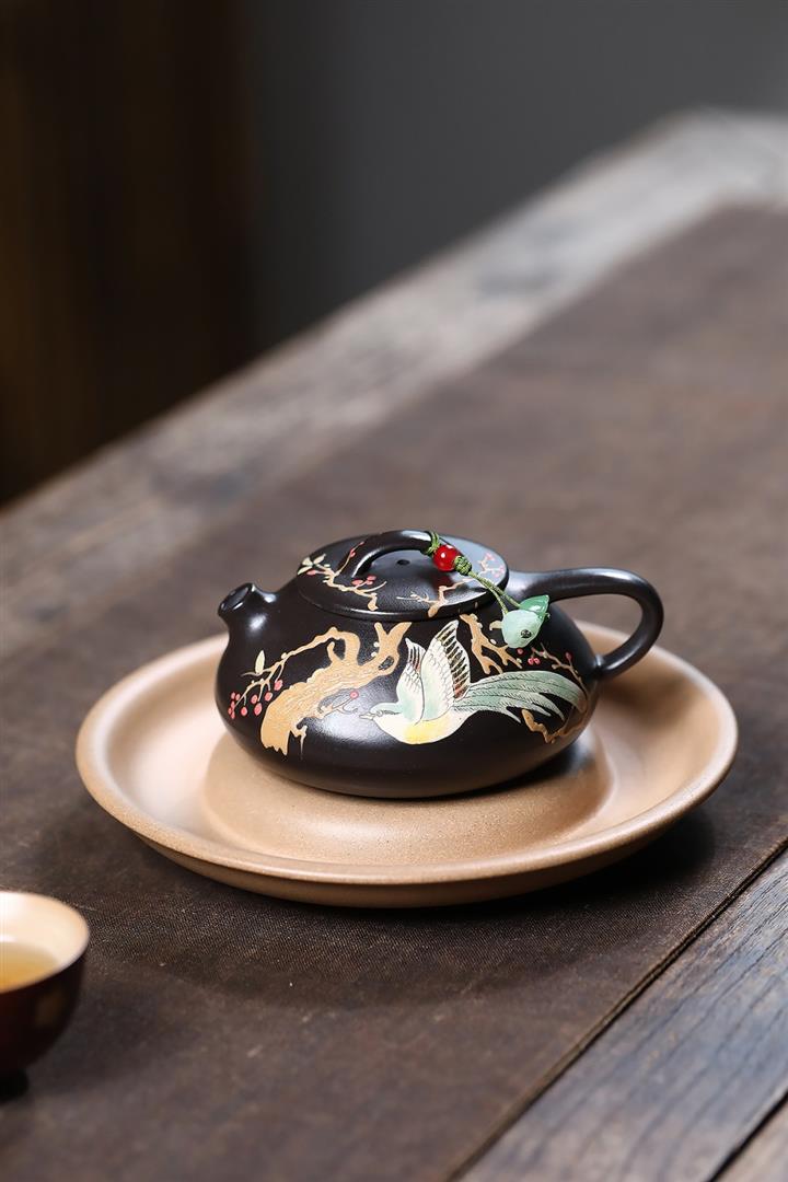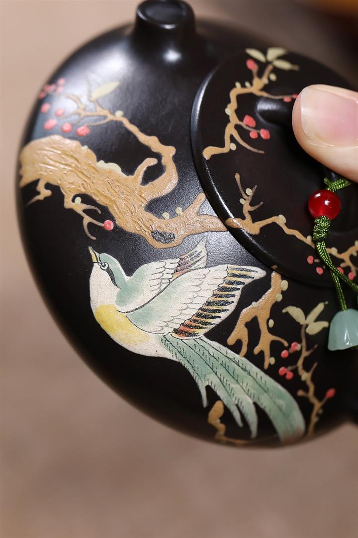 原礦黑朱泥泥繪花鳥憨瓢茶壺POT7426