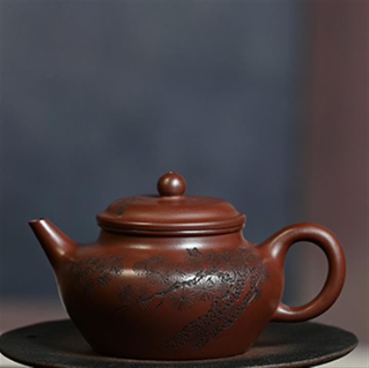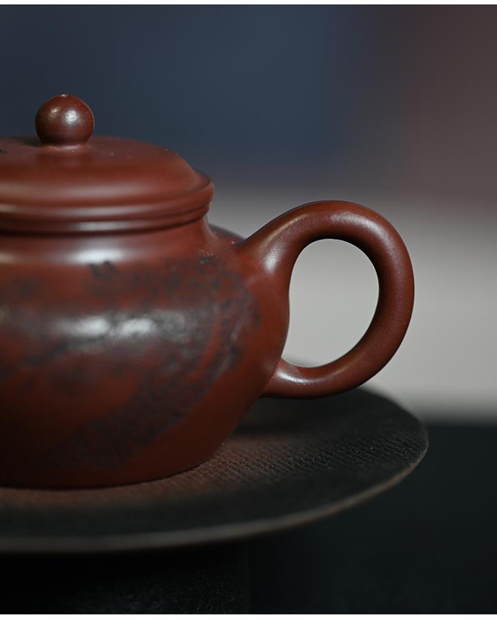 原礦龍血砂水平壺刻繪茶壺POT7440
