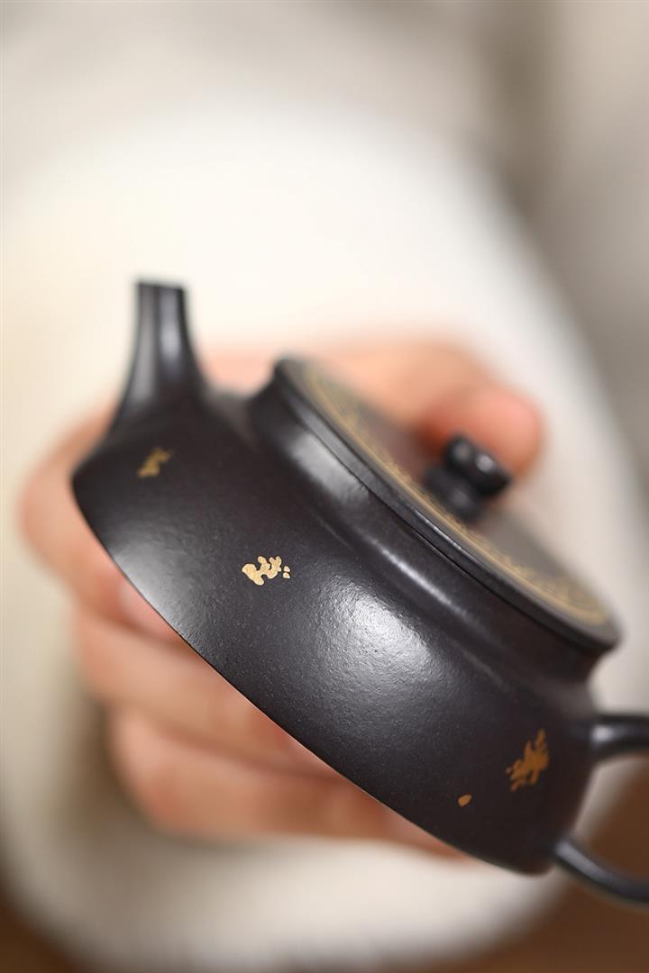 捂灰朱泥琺瑯彩燒桑扁茶壺POT7456