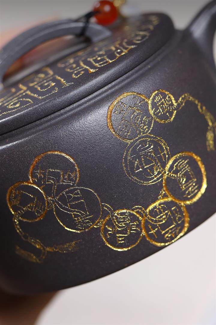 捂灰朱泥琺瑯彩漢雲茶壺POT7458