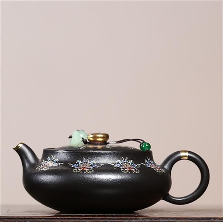 捂灰朱泥琺瑯彩燒曼殊茶壺POT7457