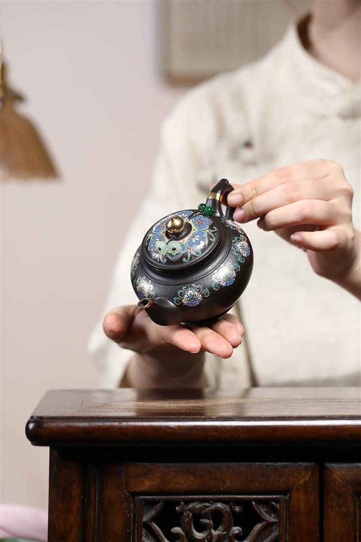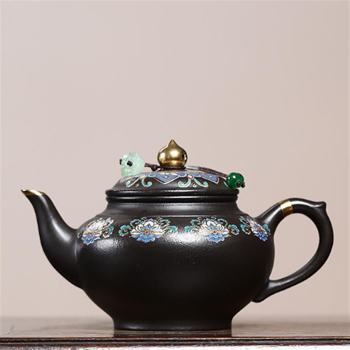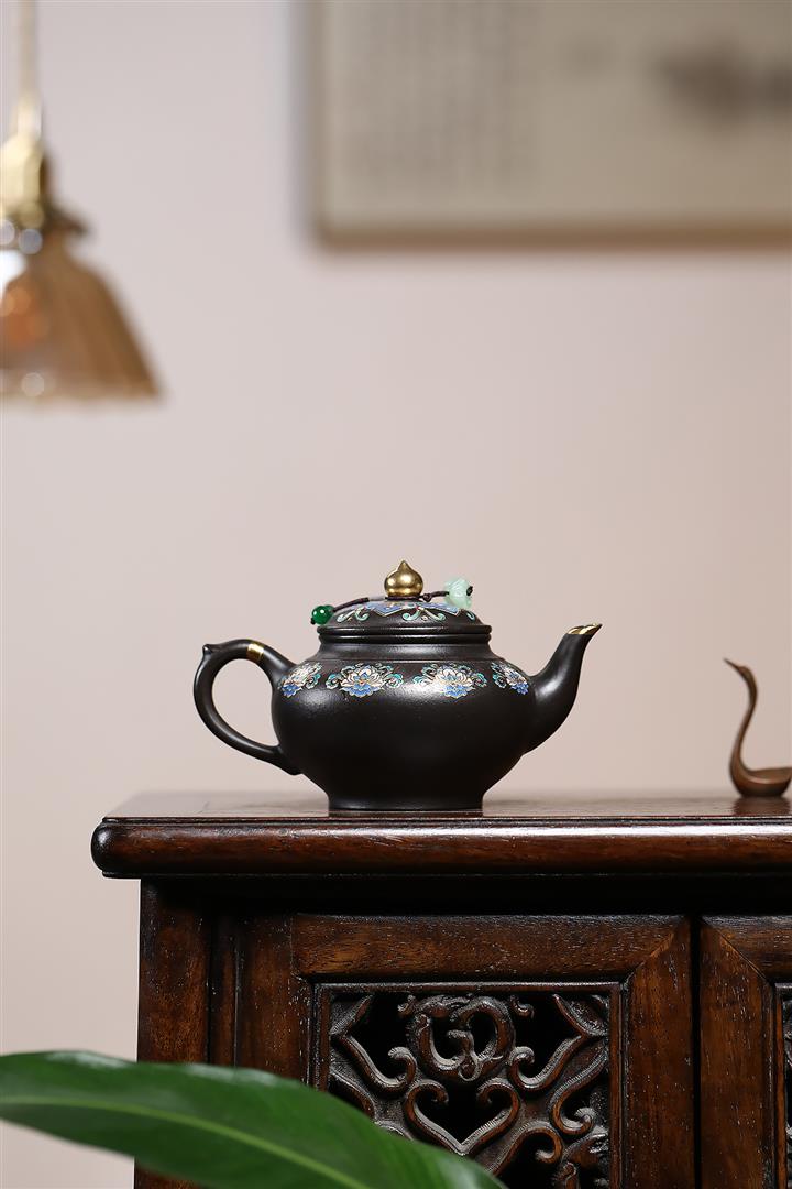 捂灰朱泥琺瑯彩燒曼殊茶壺POT7457