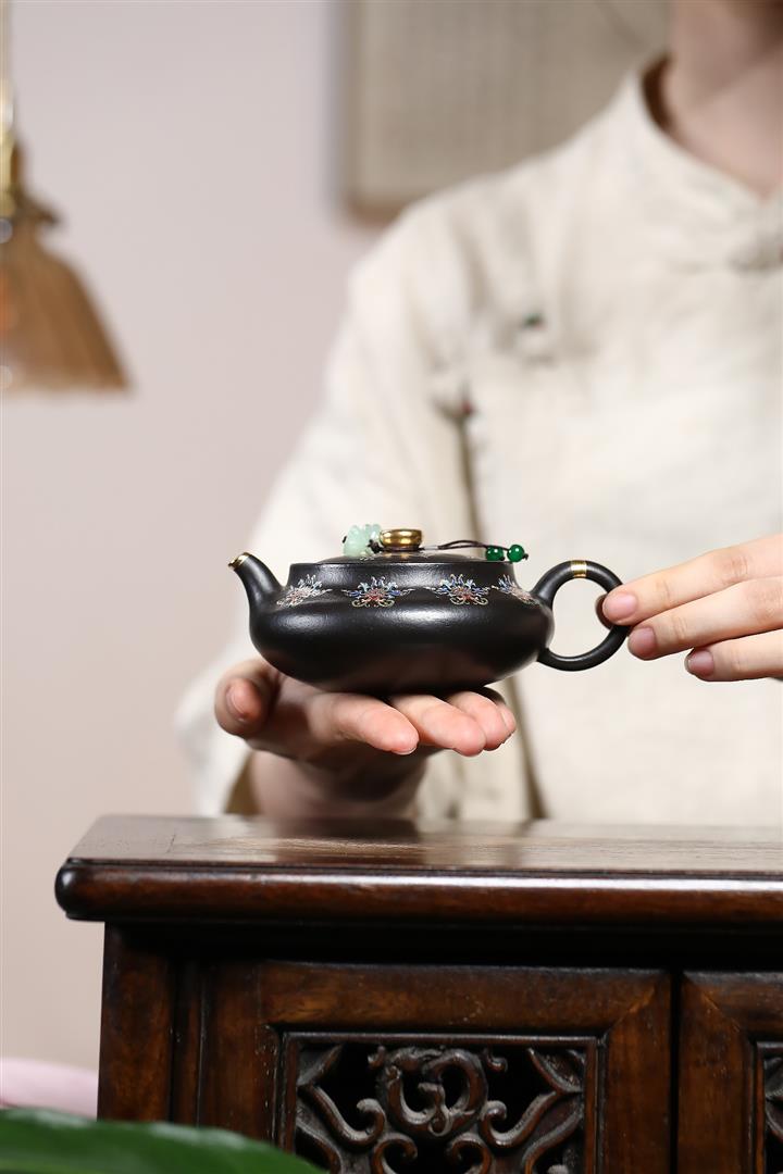 捂灰朱泥琺瑯彩燒桑扁茶壺POT7456