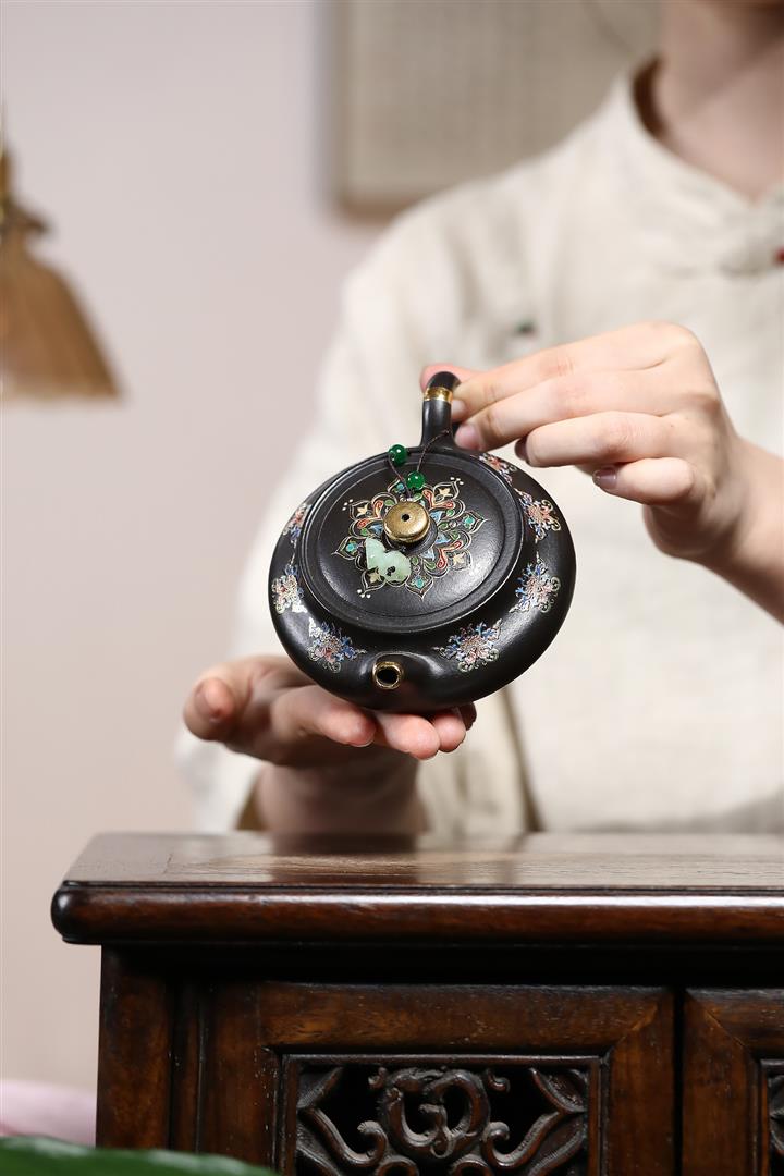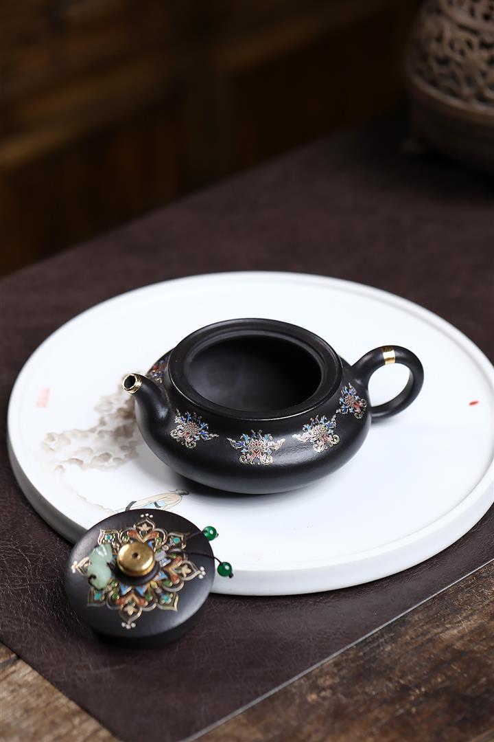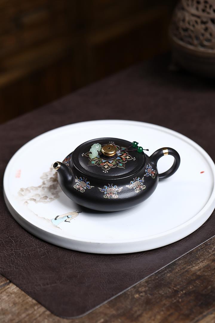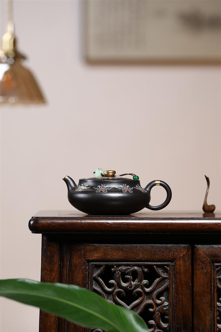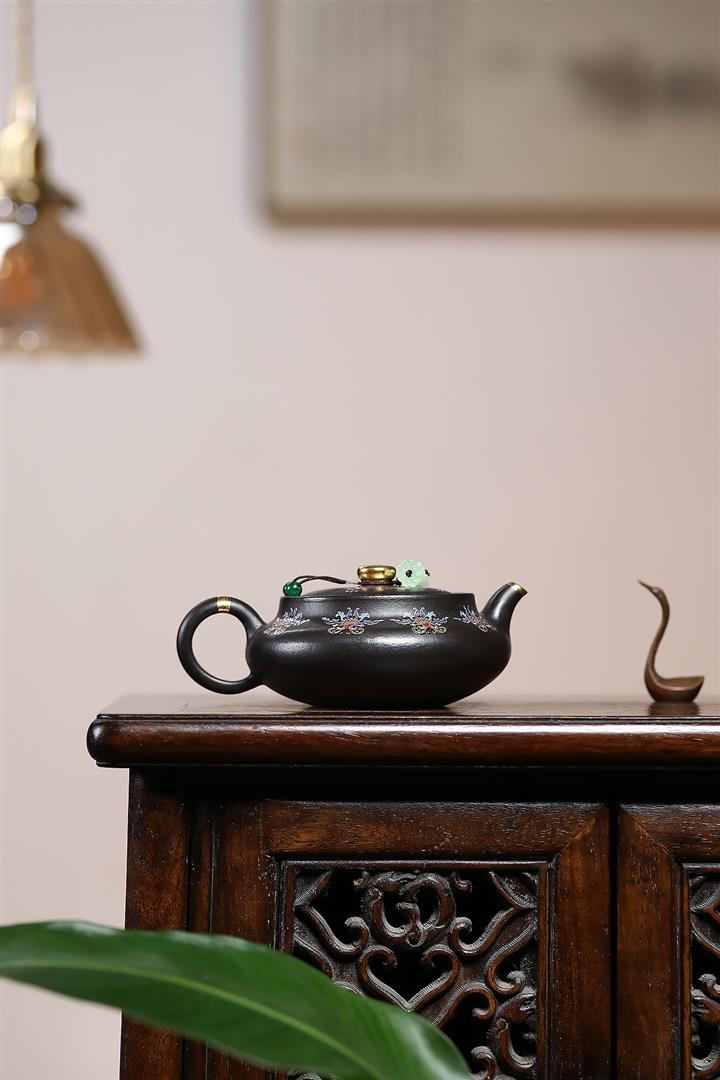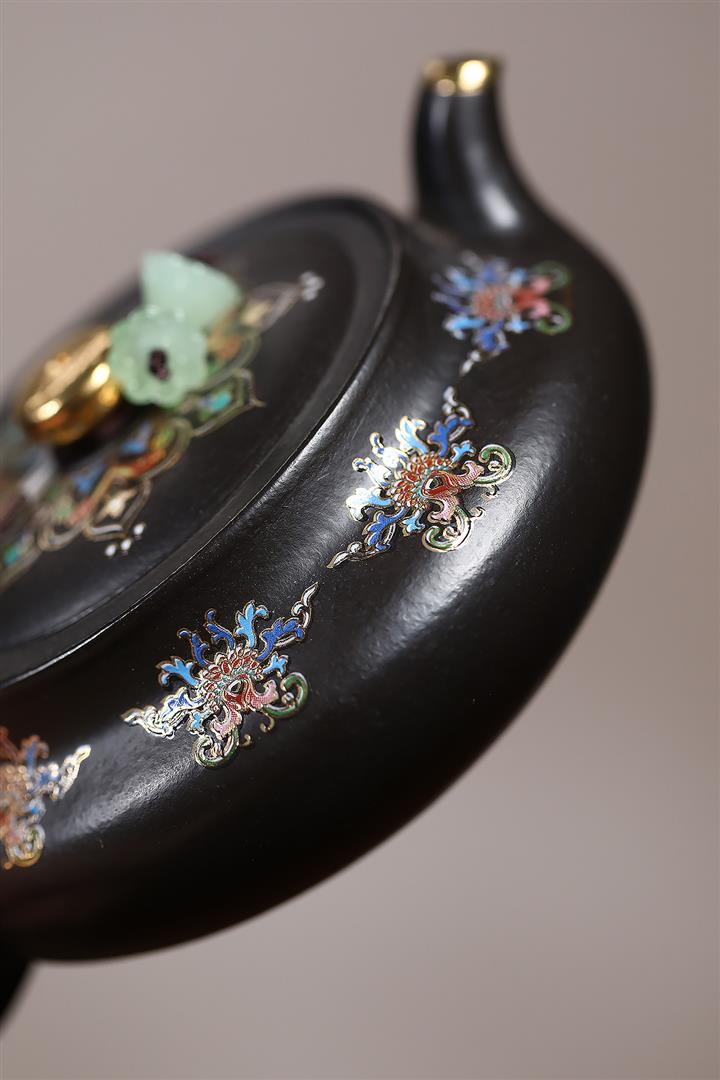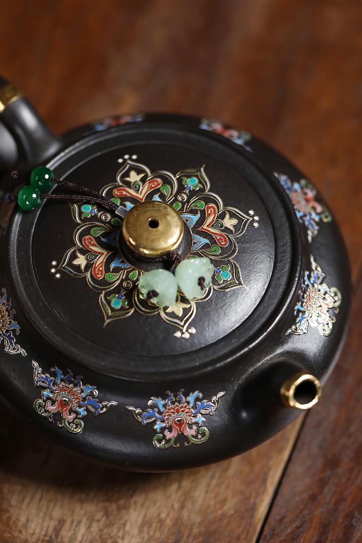 捂灰朱泥琺瑯彩燒曼殊茶壺POT7457