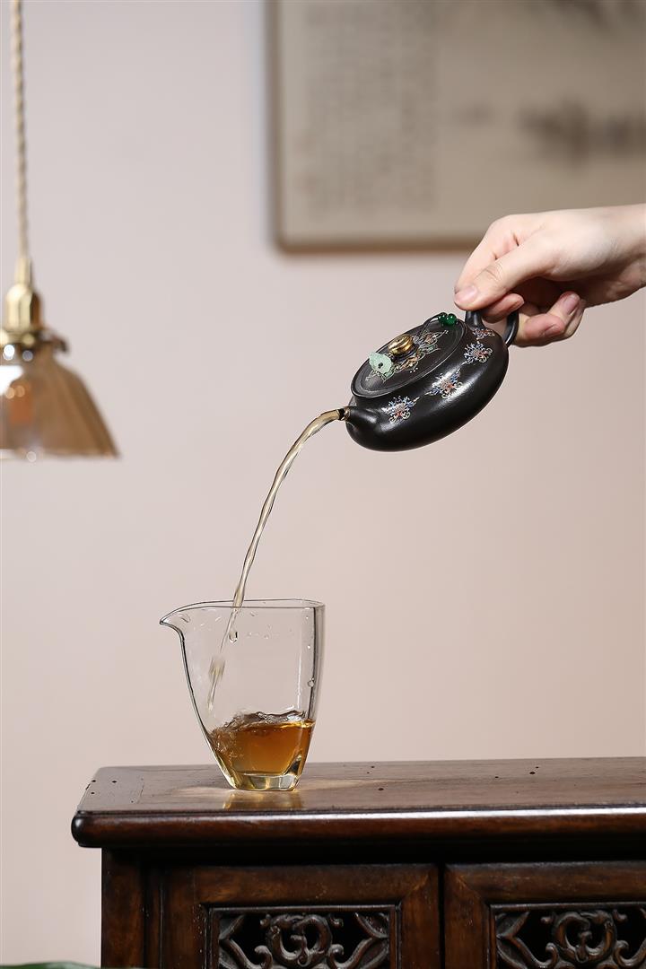 紫砂使用越久,壺身色澤越發光亮照人,氣韻溫雅。紫砂壺長久使用器身會因撫摸擦拭,變得越發溫潤光澤!
