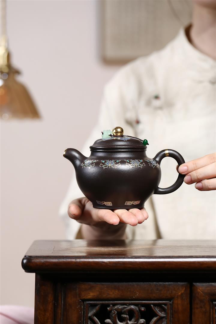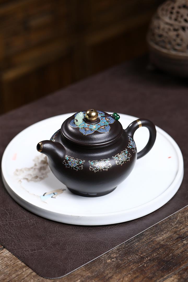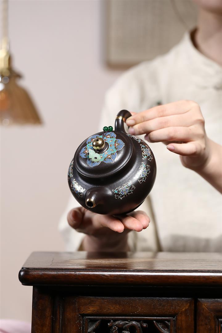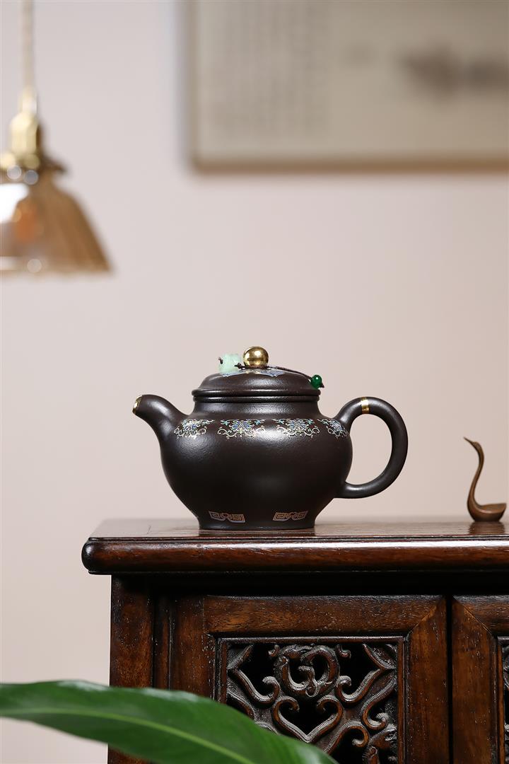 捂灰朱泥琺瑯彩掇只茶壺POT7459