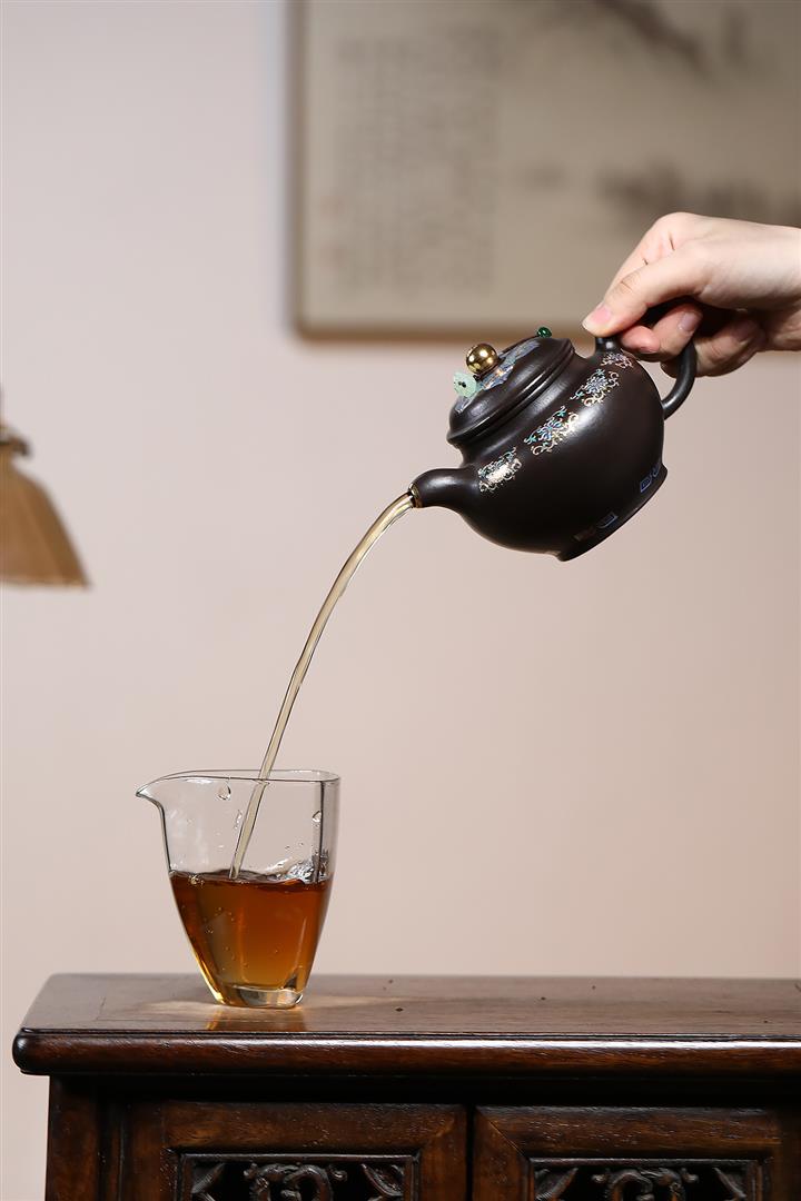紫砂使用越久,壺身色澤越發光亮照人,氣韻溫雅。紫砂壺長久使用器身會因撫摸擦拭,變得越發溫潤光澤!