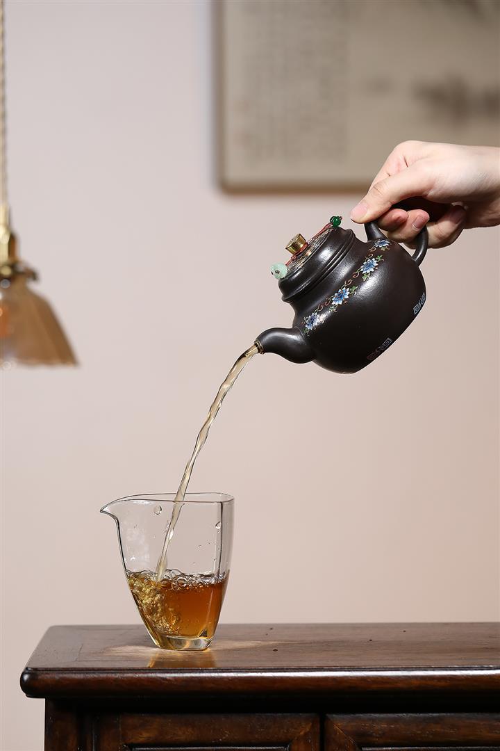 紫砂使用越久,壺身色澤越發光亮照人,氣韻溫雅。紫砂壺長久使用器身會因撫摸擦拭,變得越發溫潤光澤!