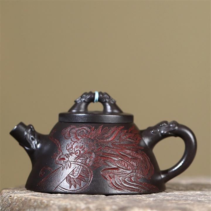 原礦龍血砂泥韶華花鳥文人茶壺POT7465
