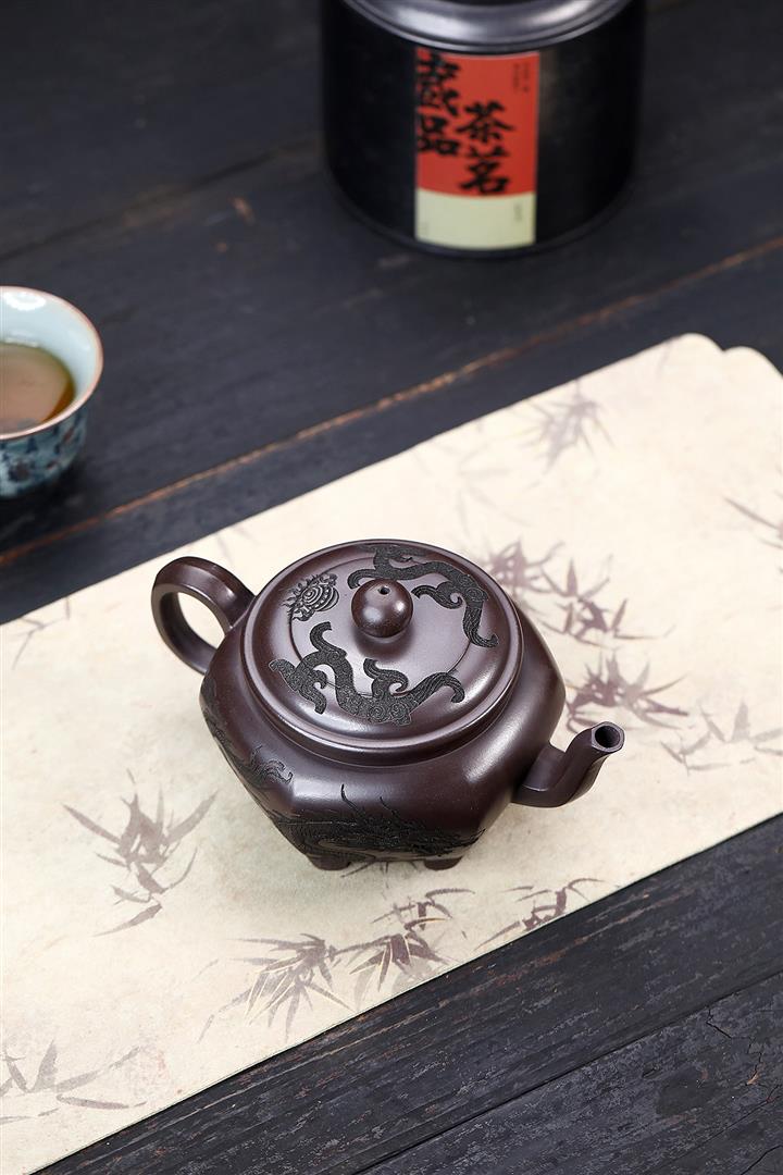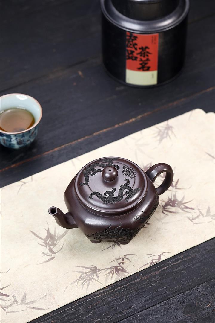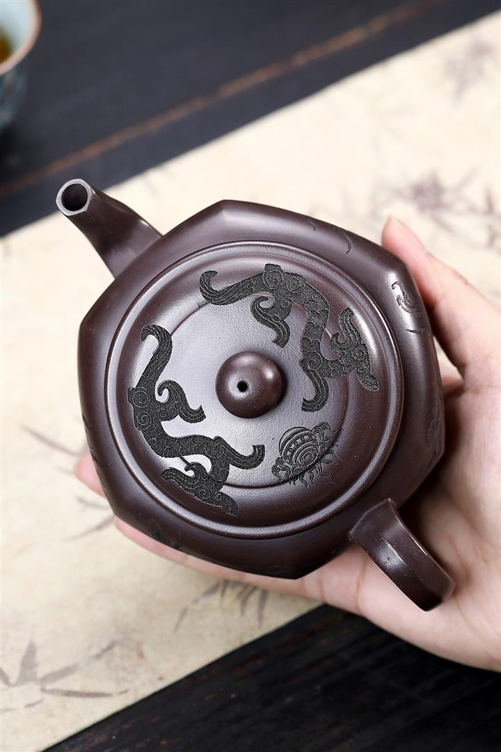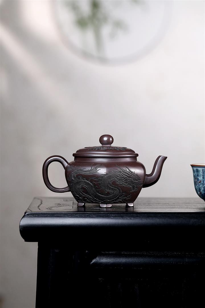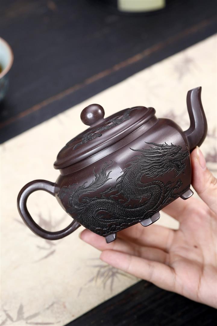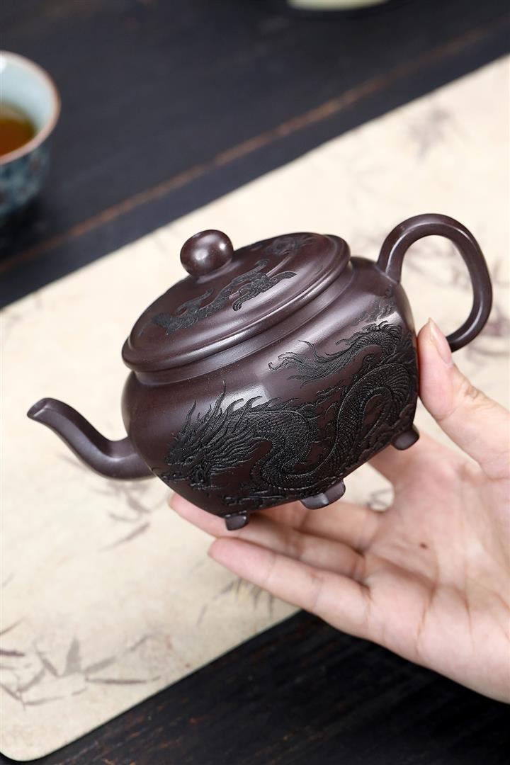 原礦老紫泥雙龍戲珠茶壺POT7466