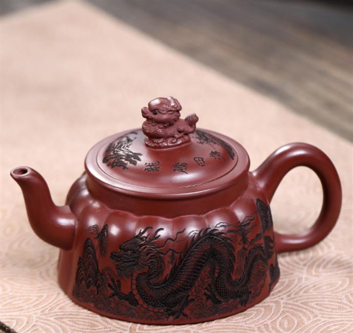 原礦紫泥刻繪龍行天下茶壺POT7483