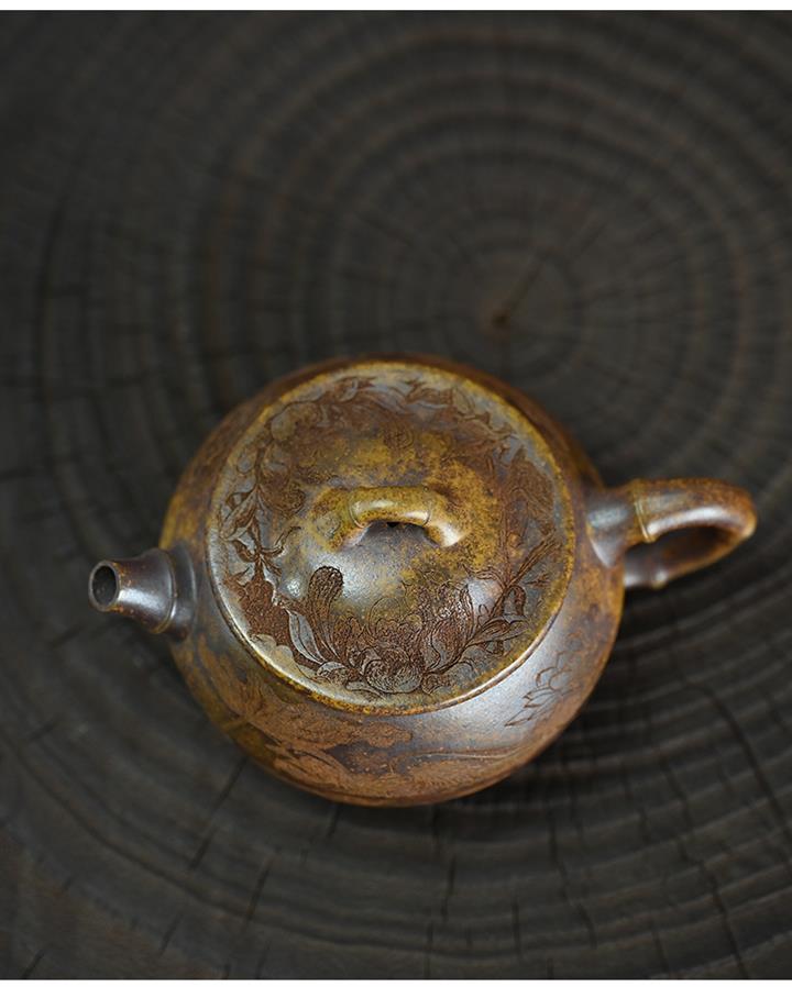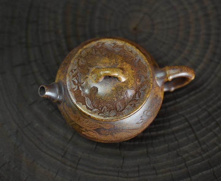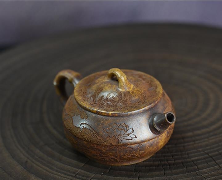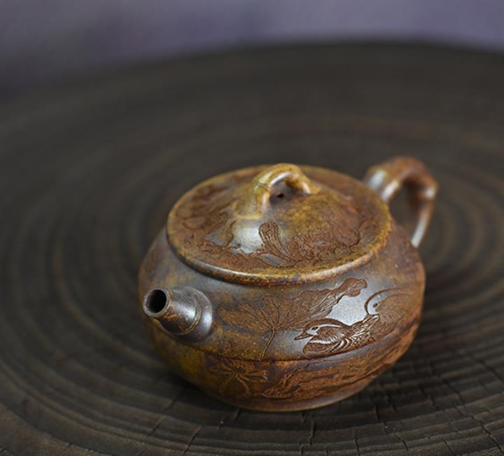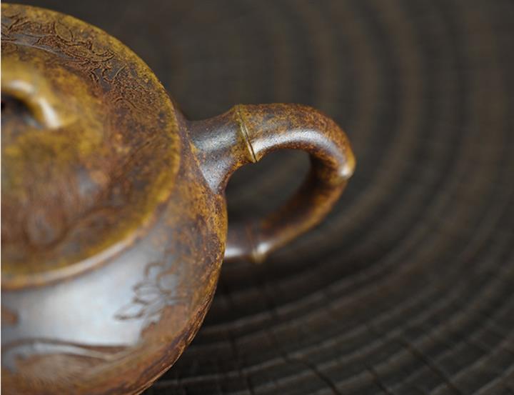 原礦黃金段泥還原燒竹鼓茶壺POT7476