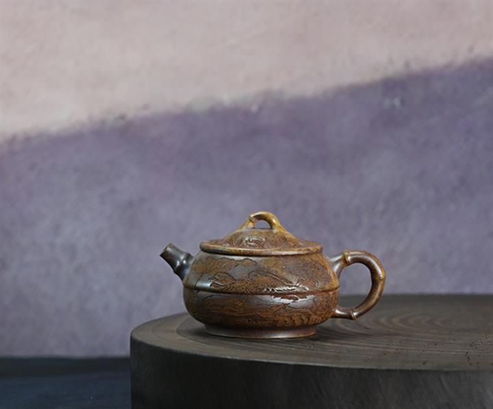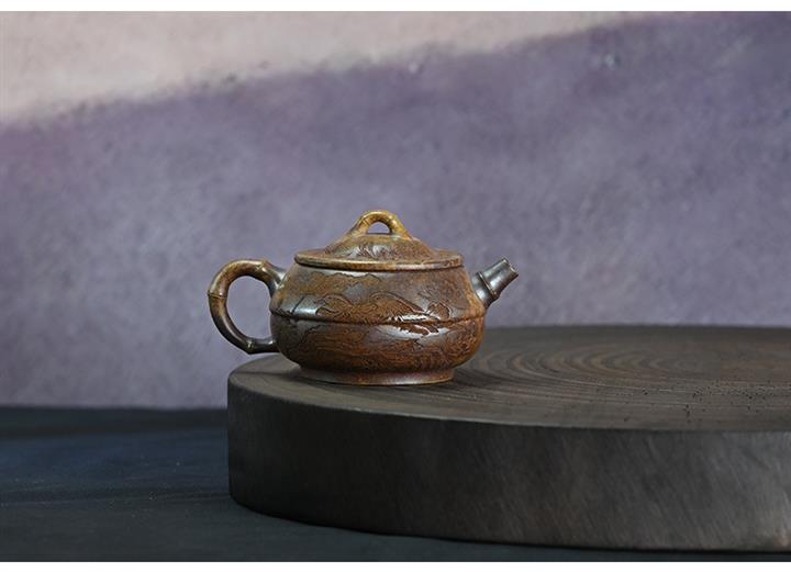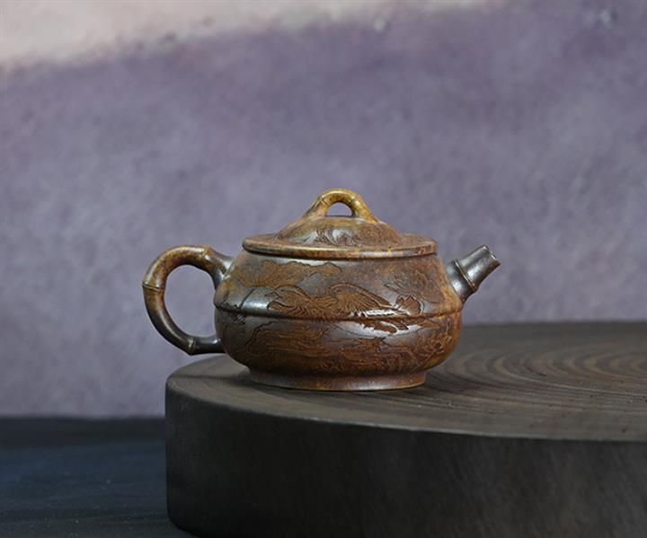 原礦紫泥刻繪龍行天下茶壺POT7483