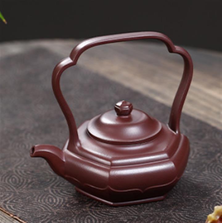 原礦紫泥六方宮燈提梁壺POT7486