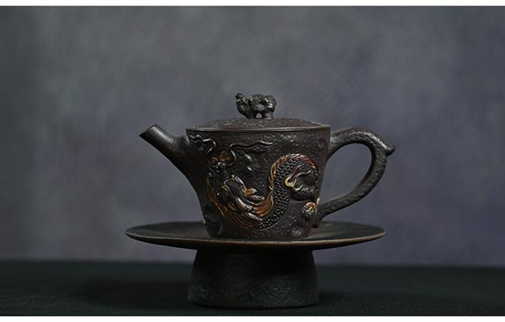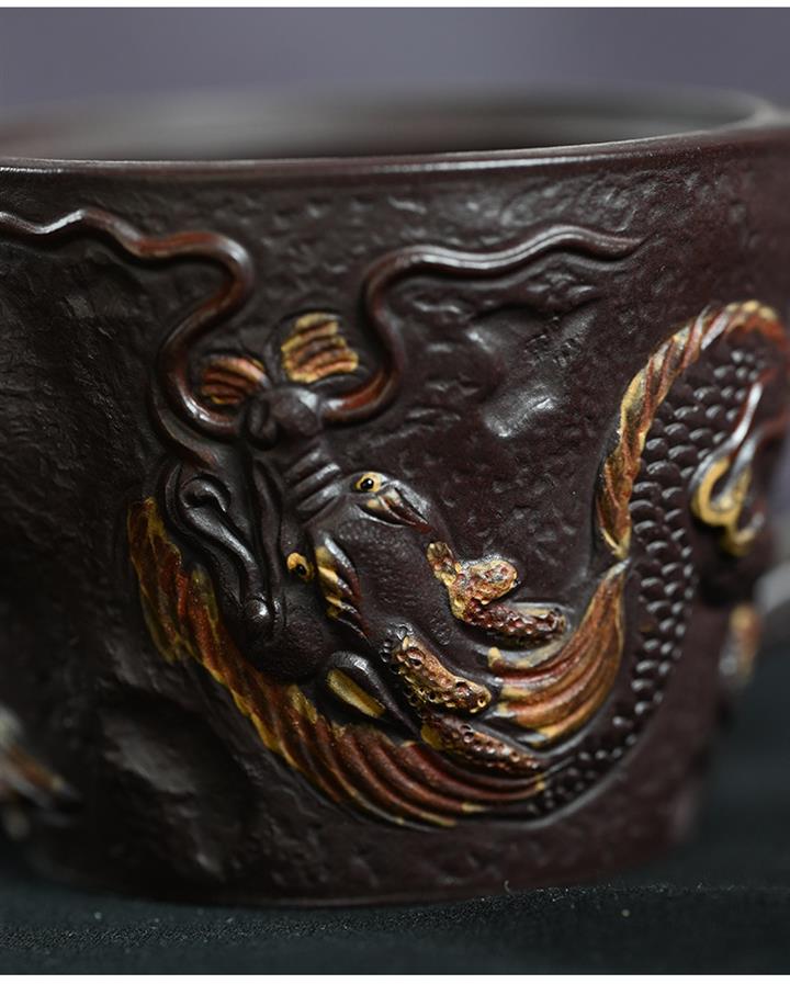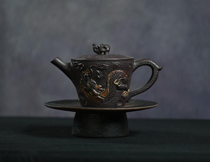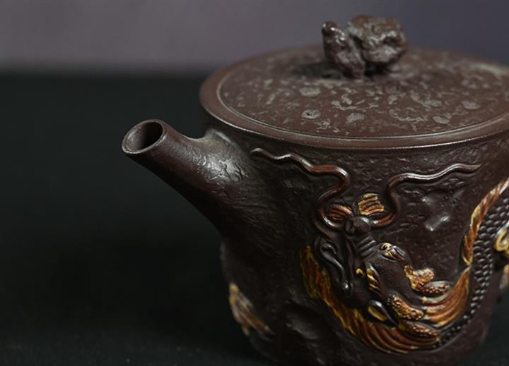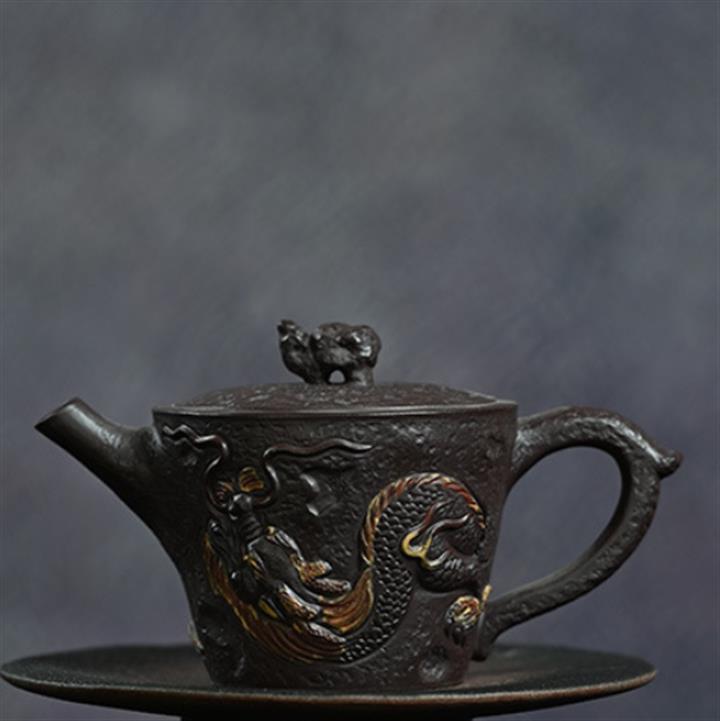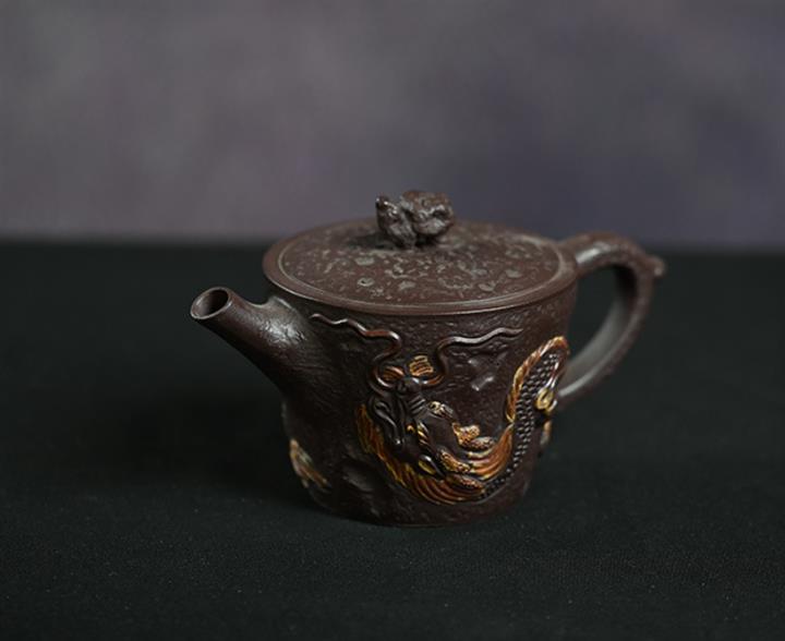 原礦紫泥刻繪龍行天下茶壺POT7483