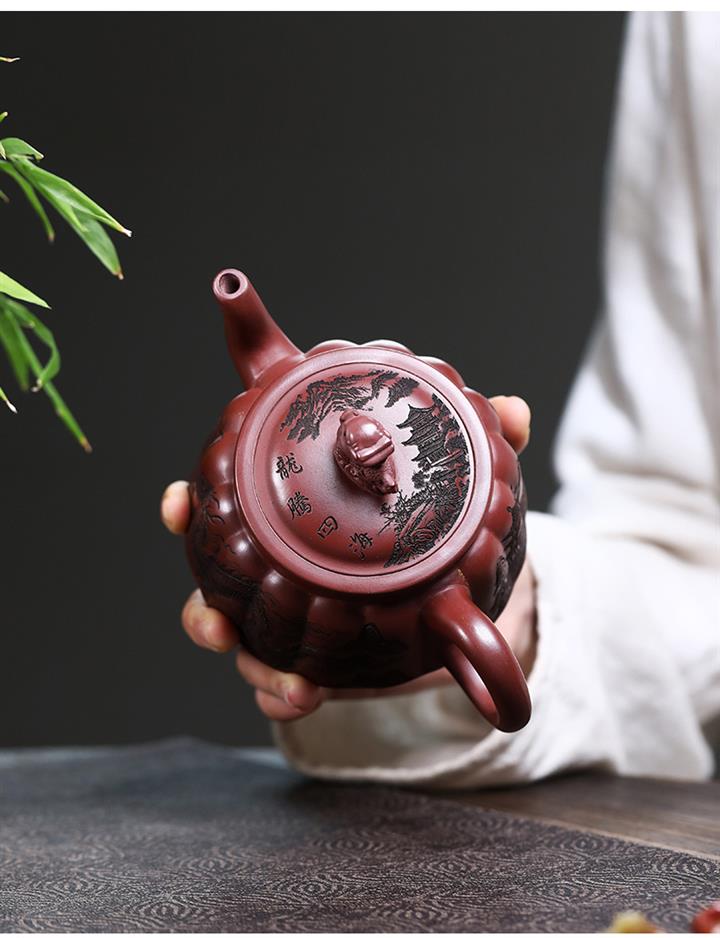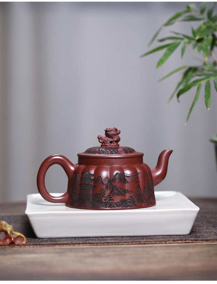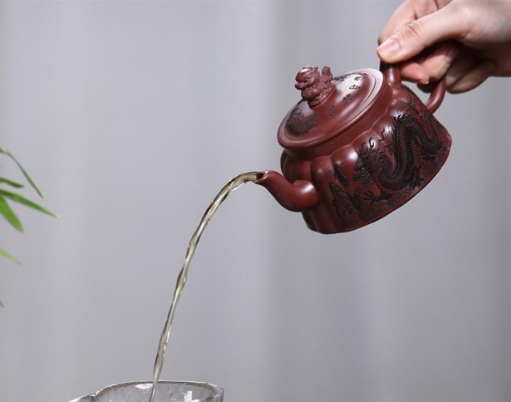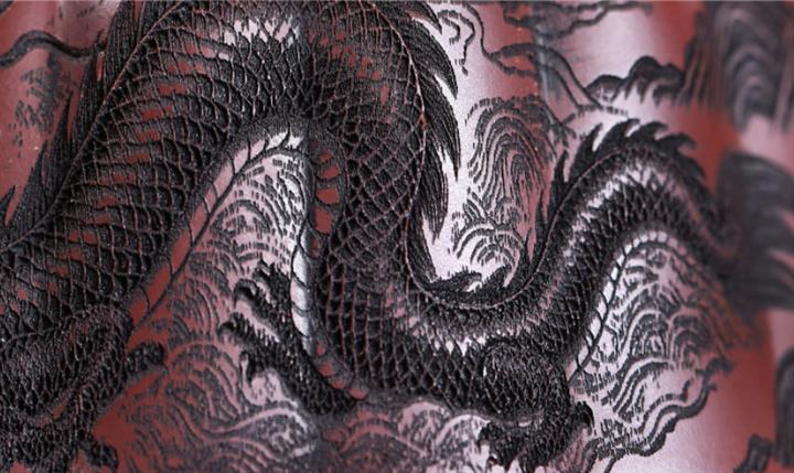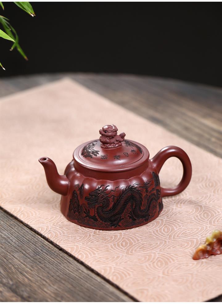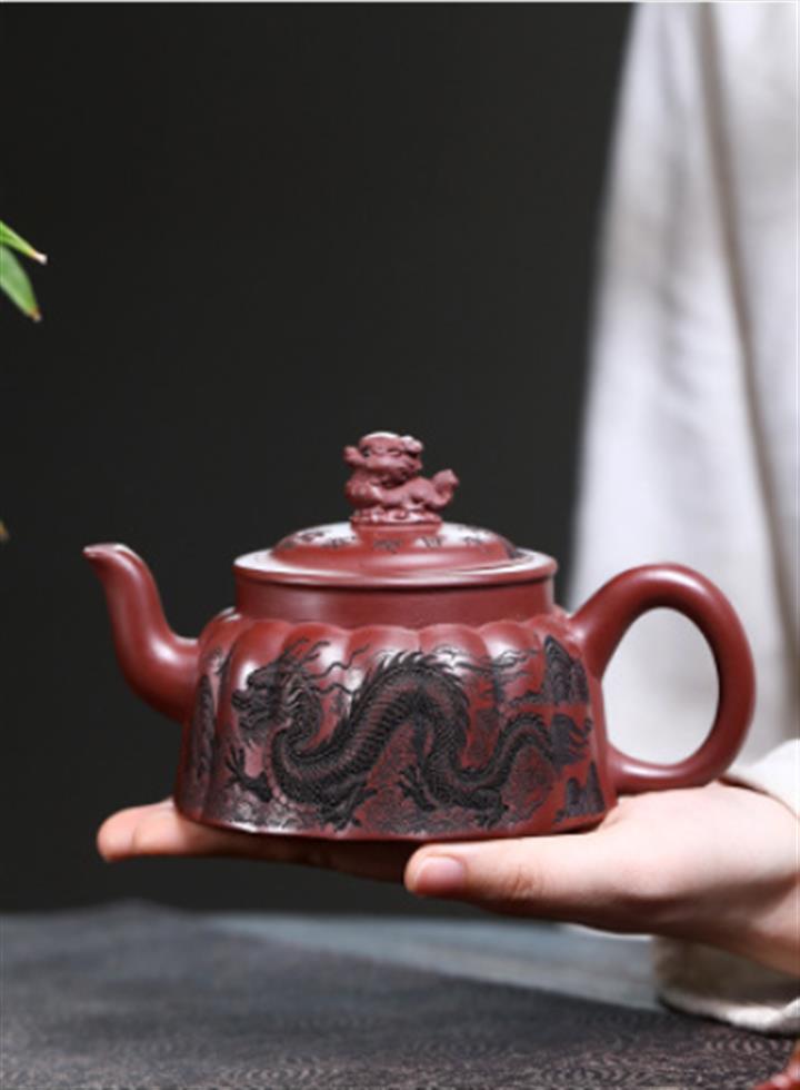 原礦紫泥刻繪龍行天下茶壺POT7483