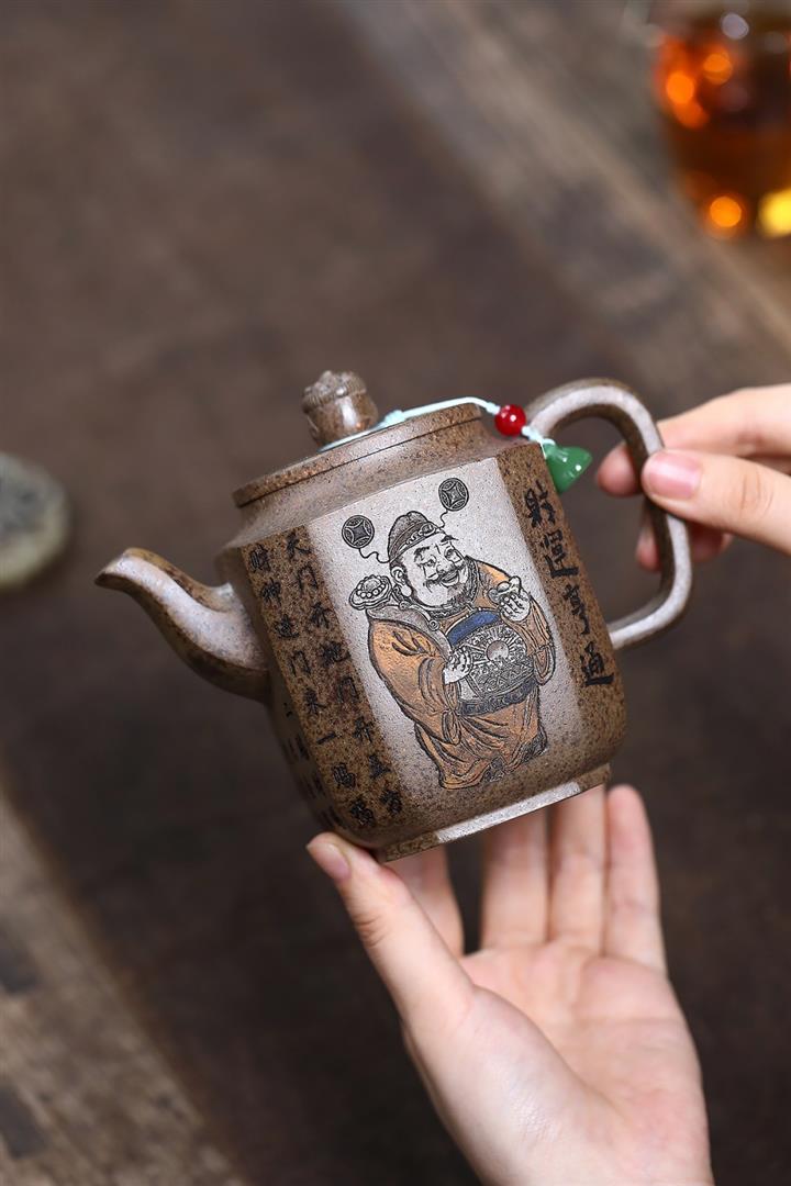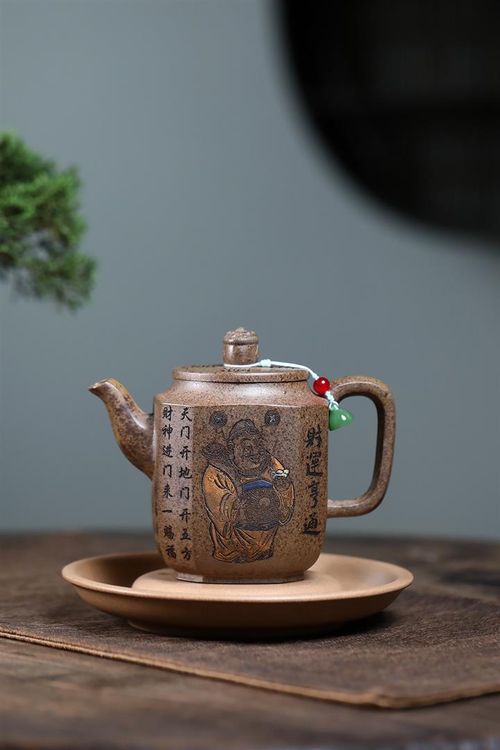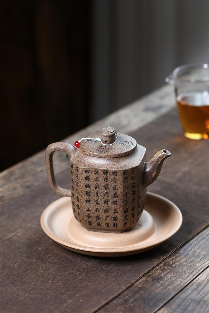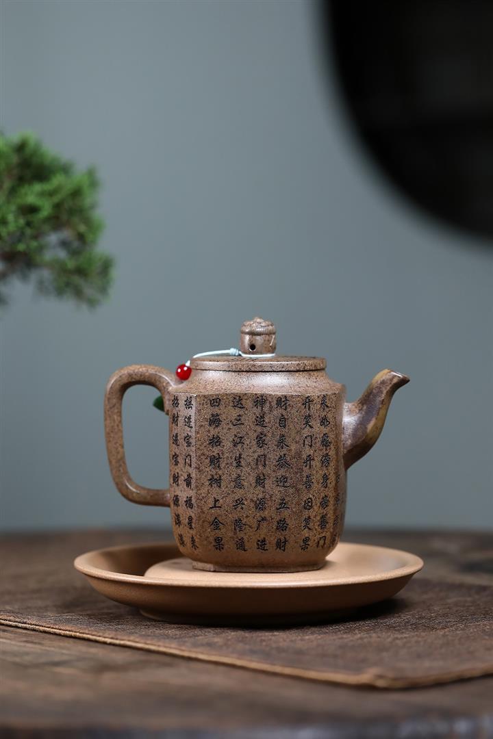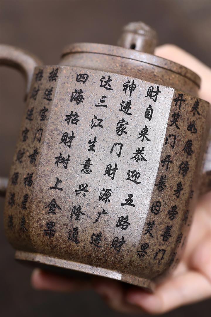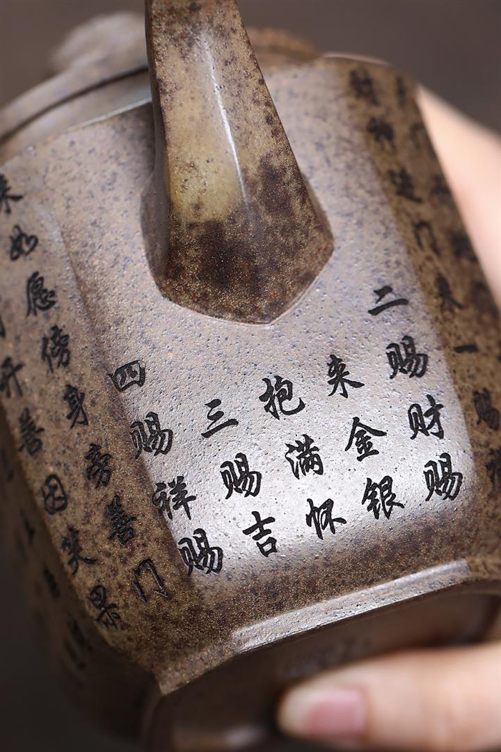 原礦柴燒沈香泥財運亨通四方茶壺POT7488