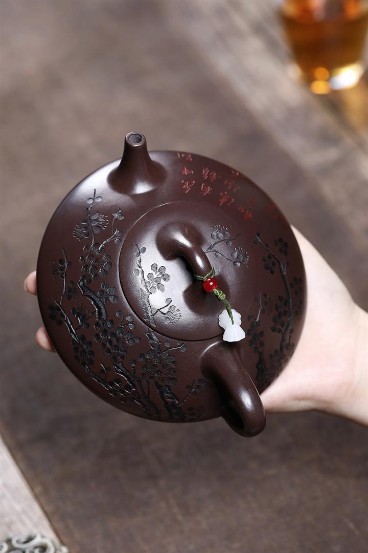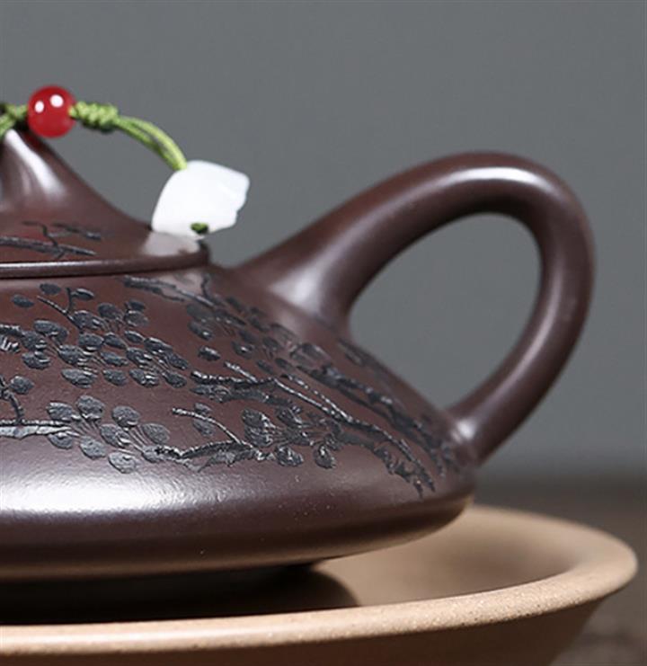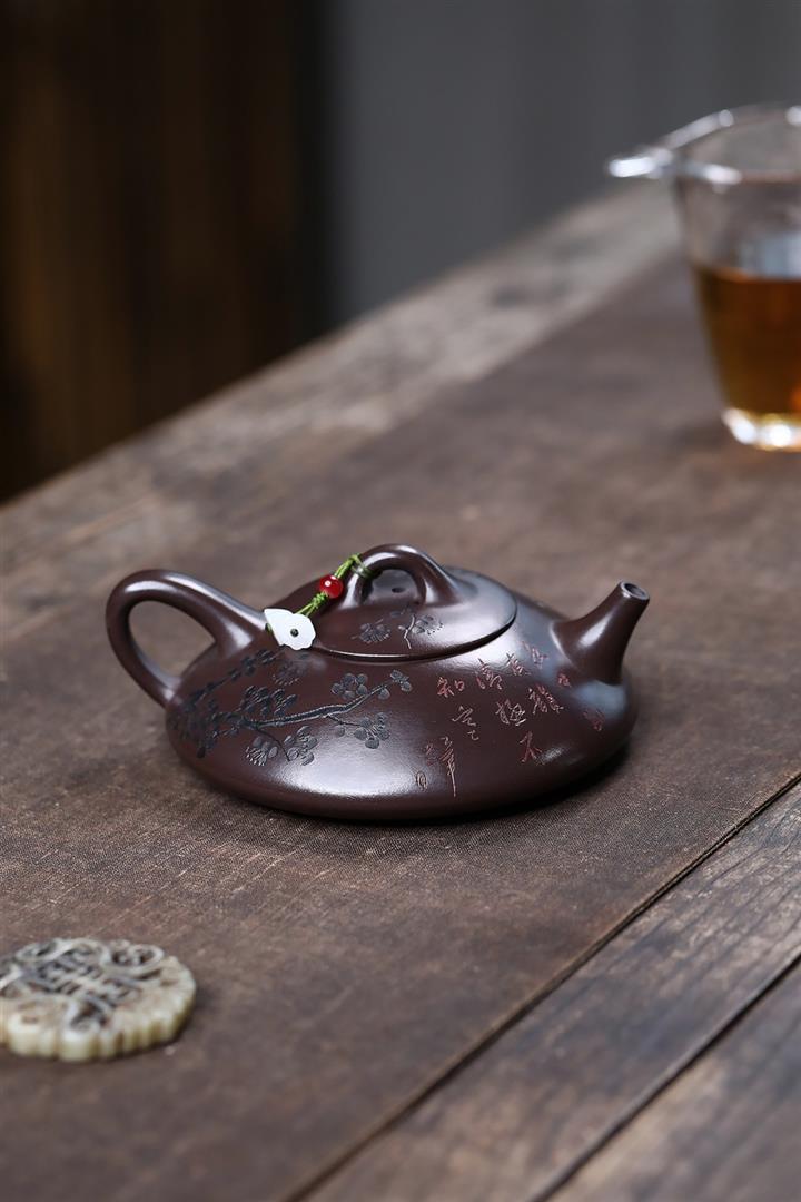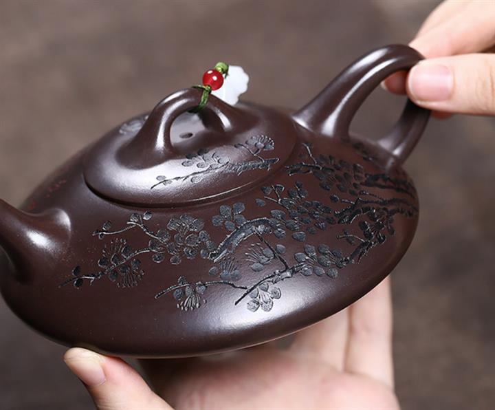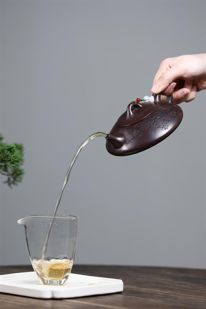 紫砂使用越久,壺身色澤越發光亮照人,氣韻溫雅。紫砂壺長久使用器身會因撫摸擦拭,變得越發溫潤光澤!