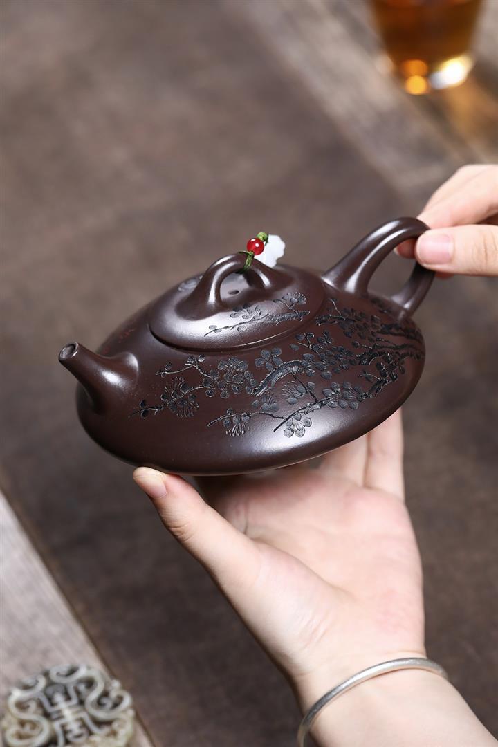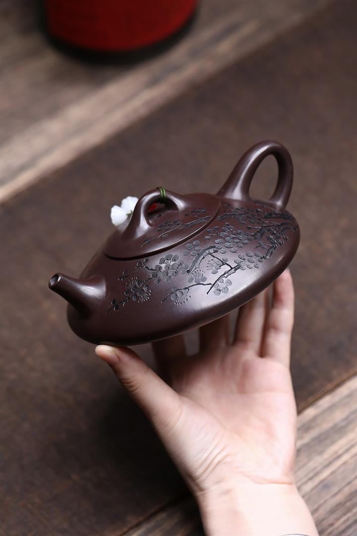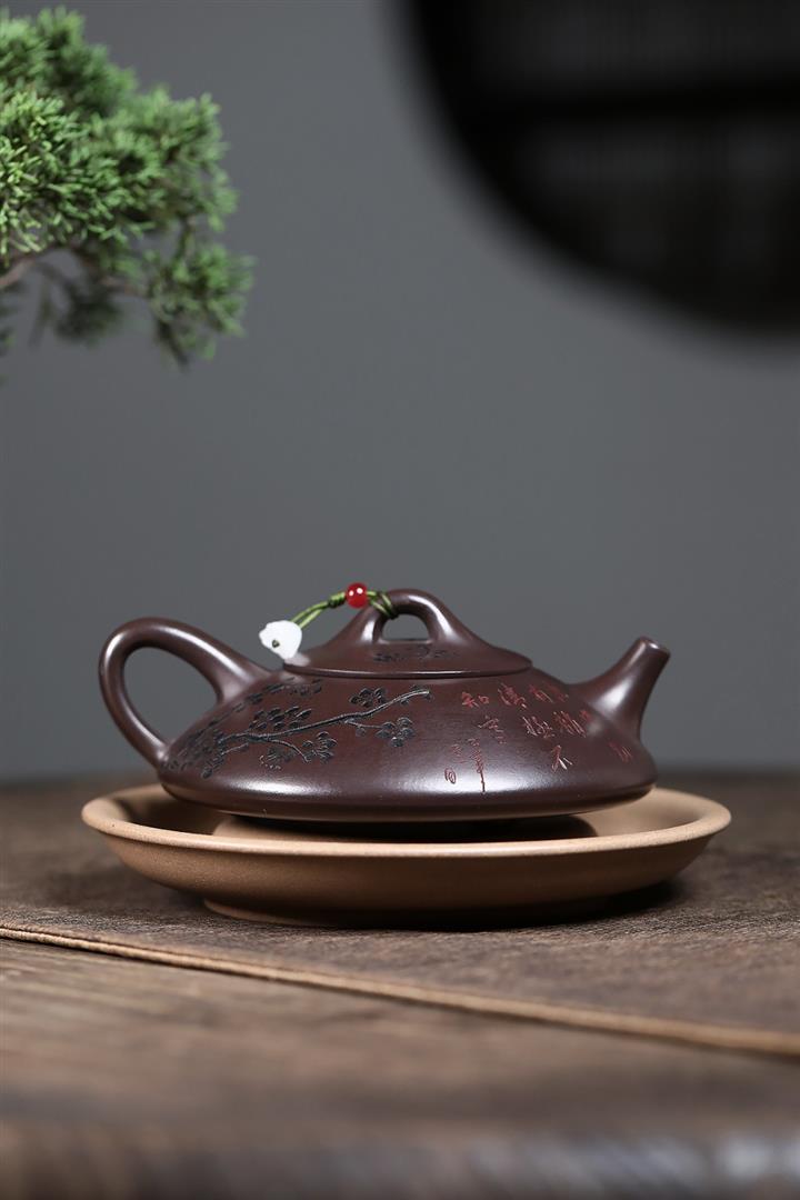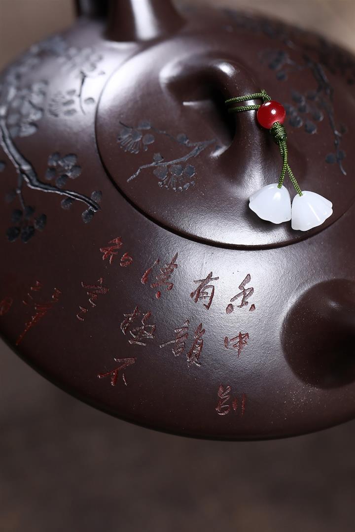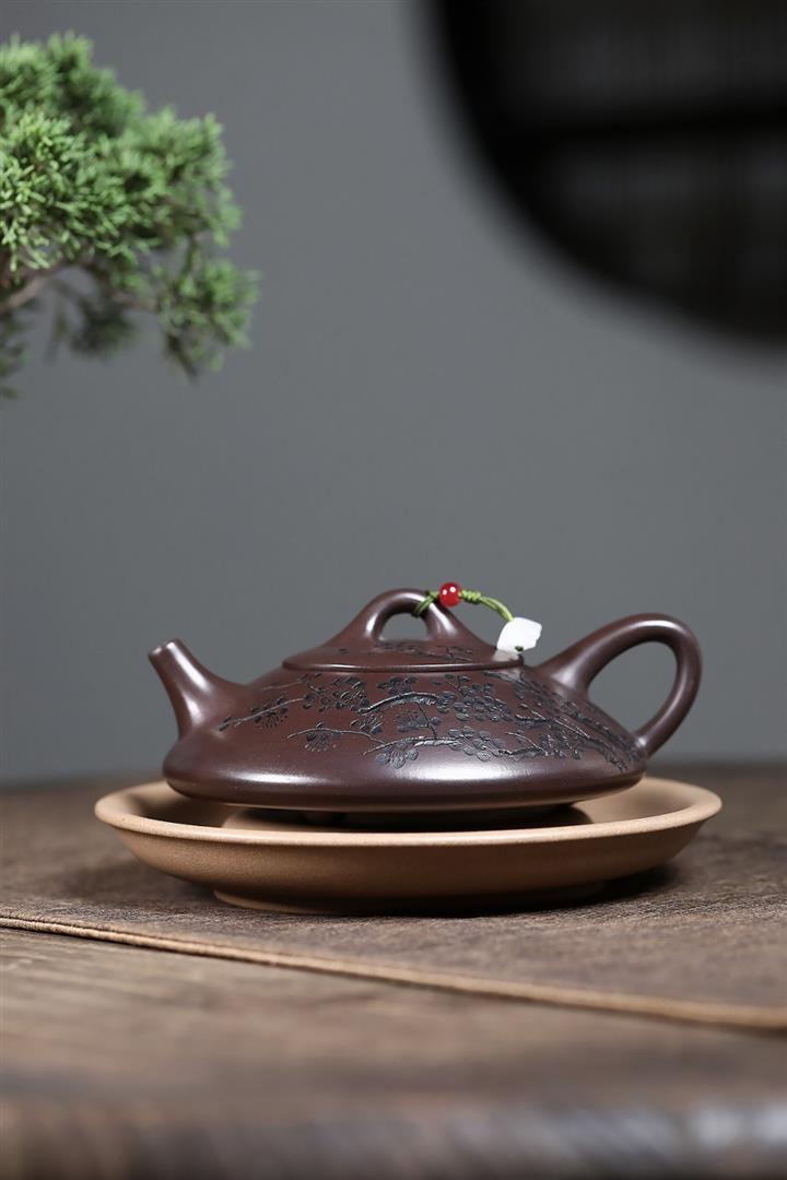 紫砂使用越久,壺身色澤越發光亮照人,氣韻溫雅。紫砂壺長久使用器身會因撫摸擦拭,變得越發溫潤光澤!