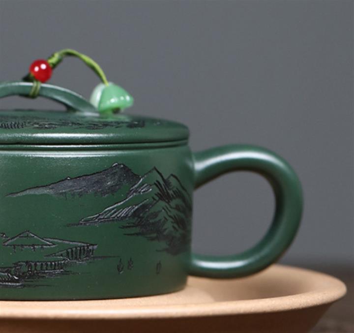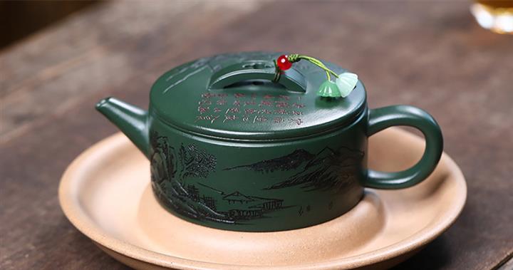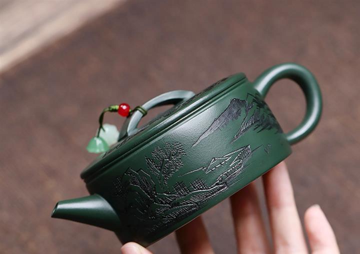 原礦綠泥文人山水漢瓦茶壺POT7498