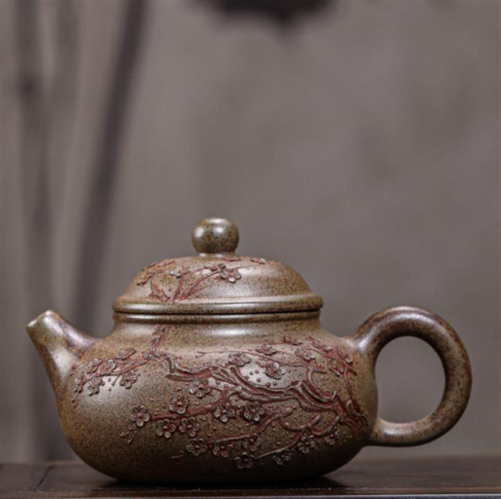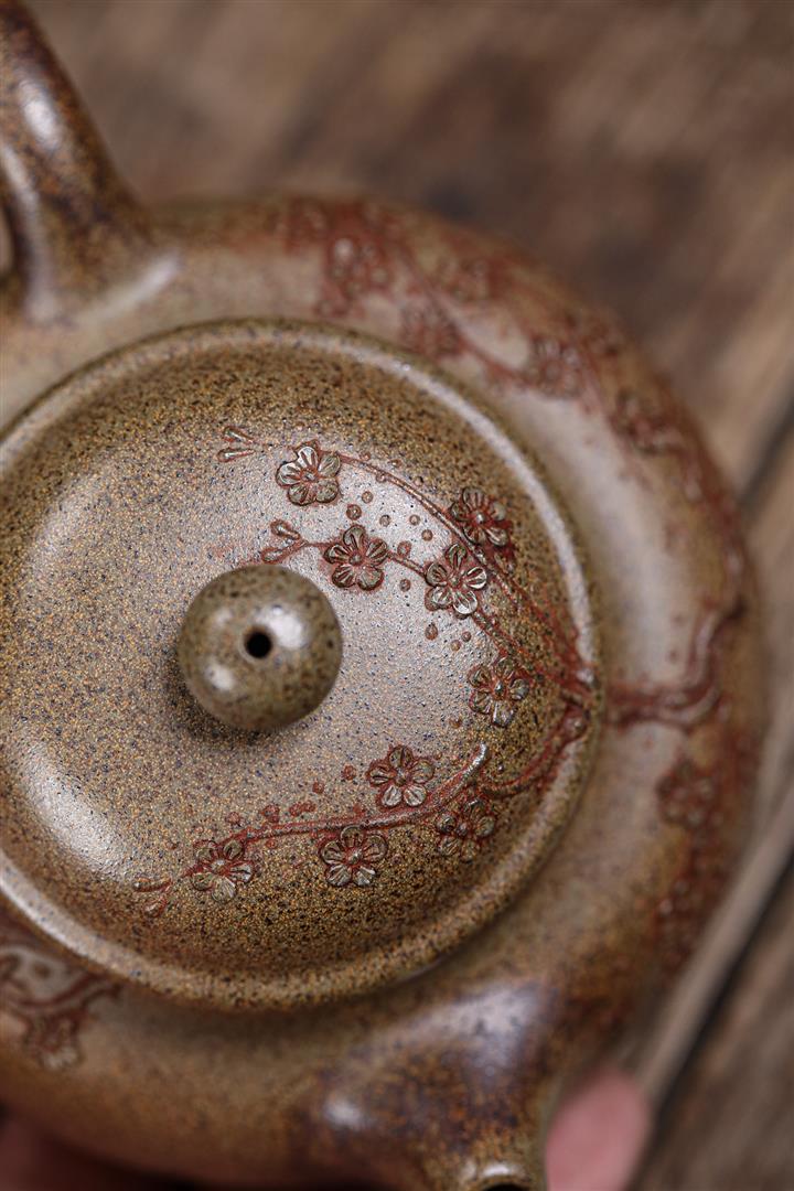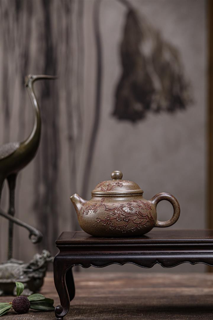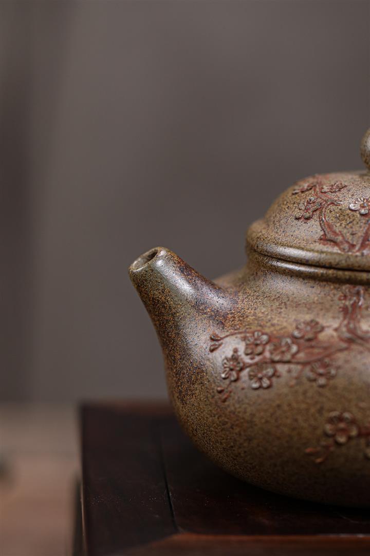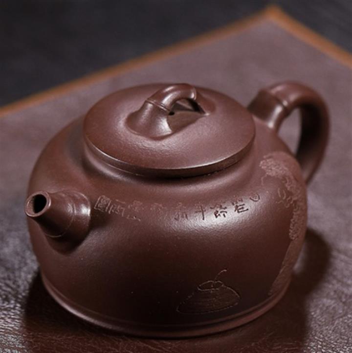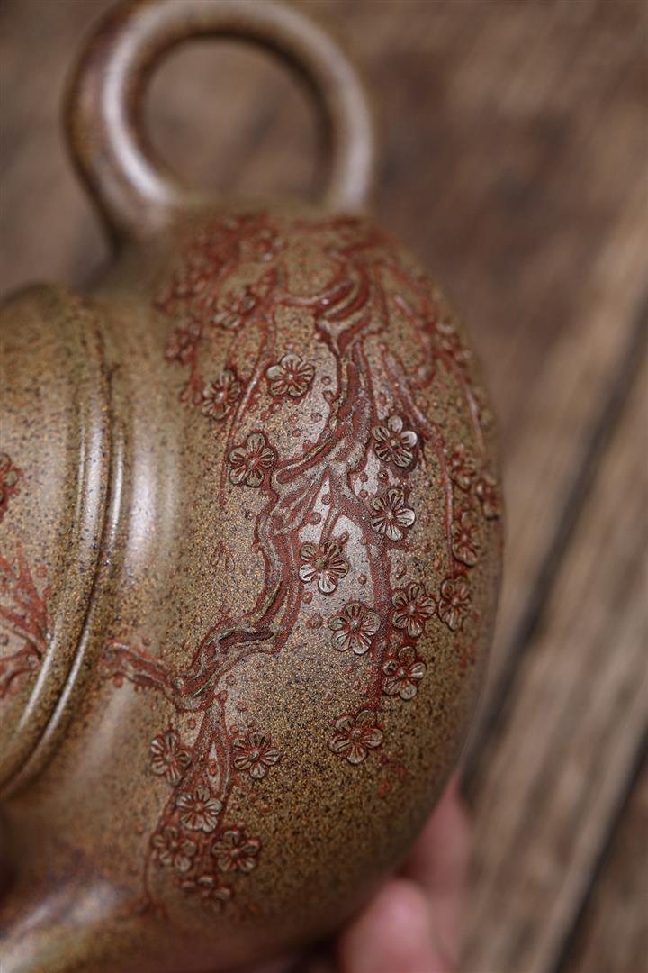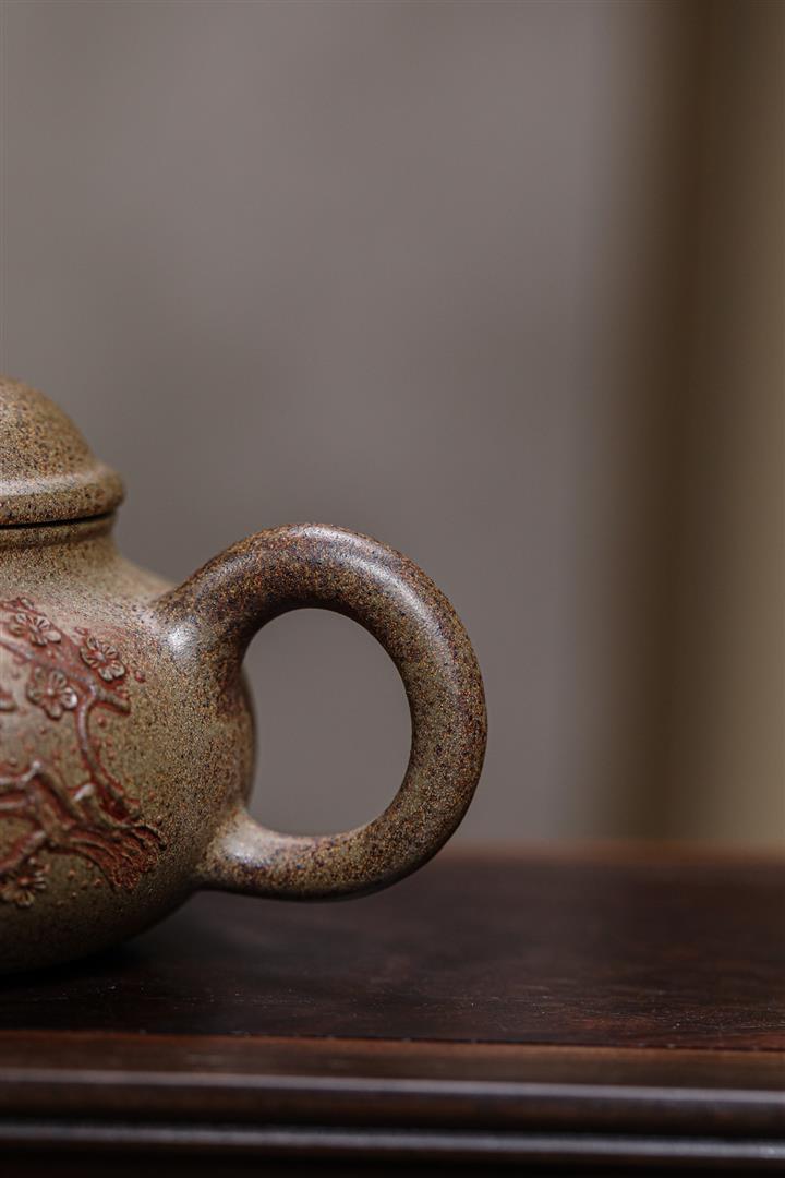 原礦紫砂君子蘭刻繪漢鐸茶壺POT7517