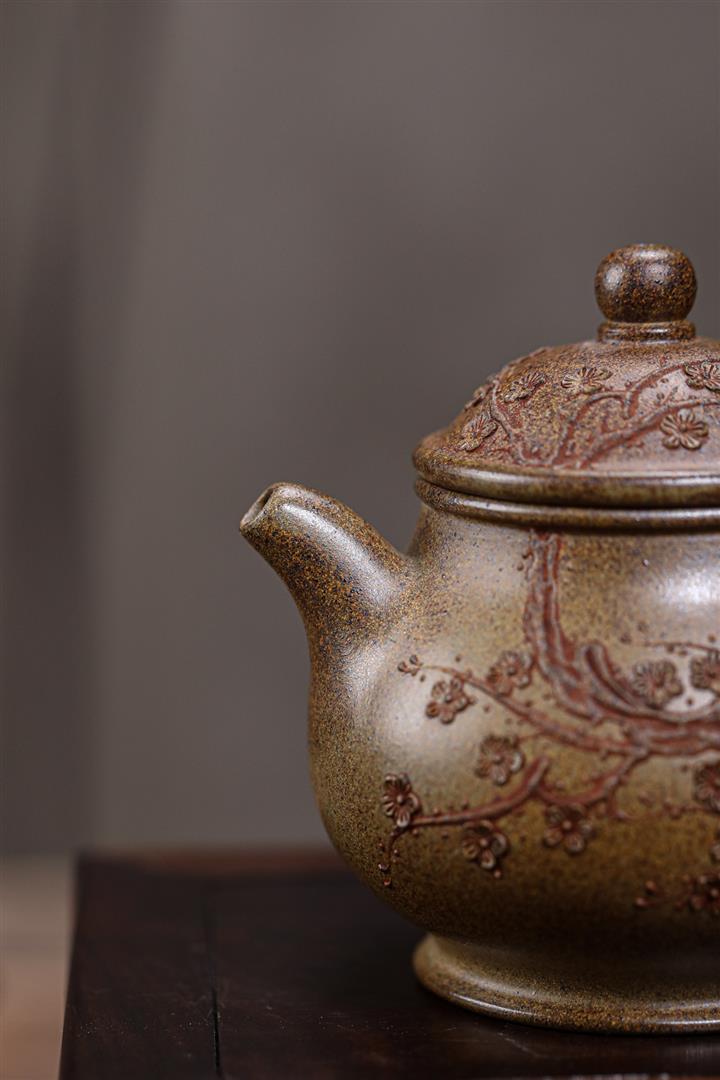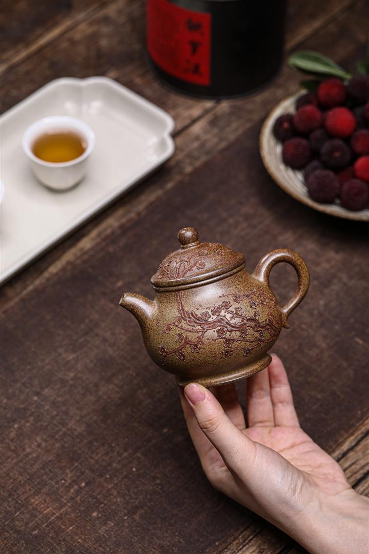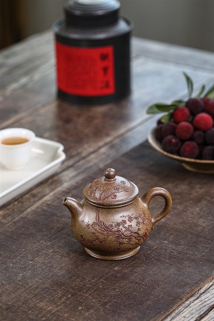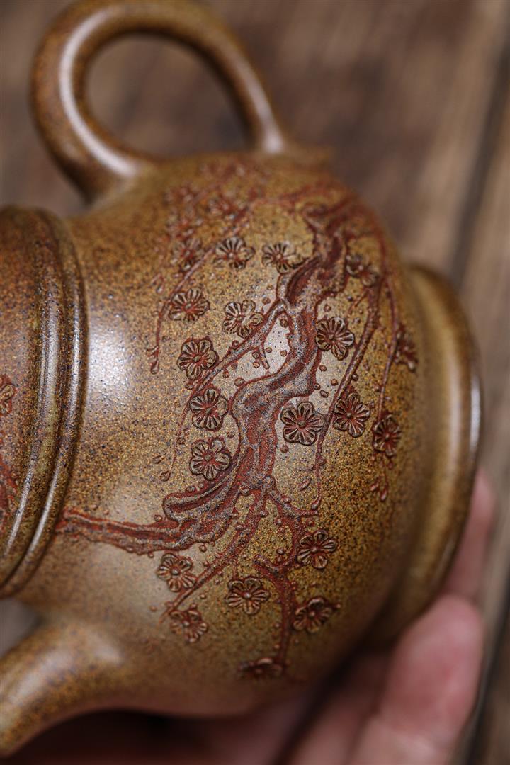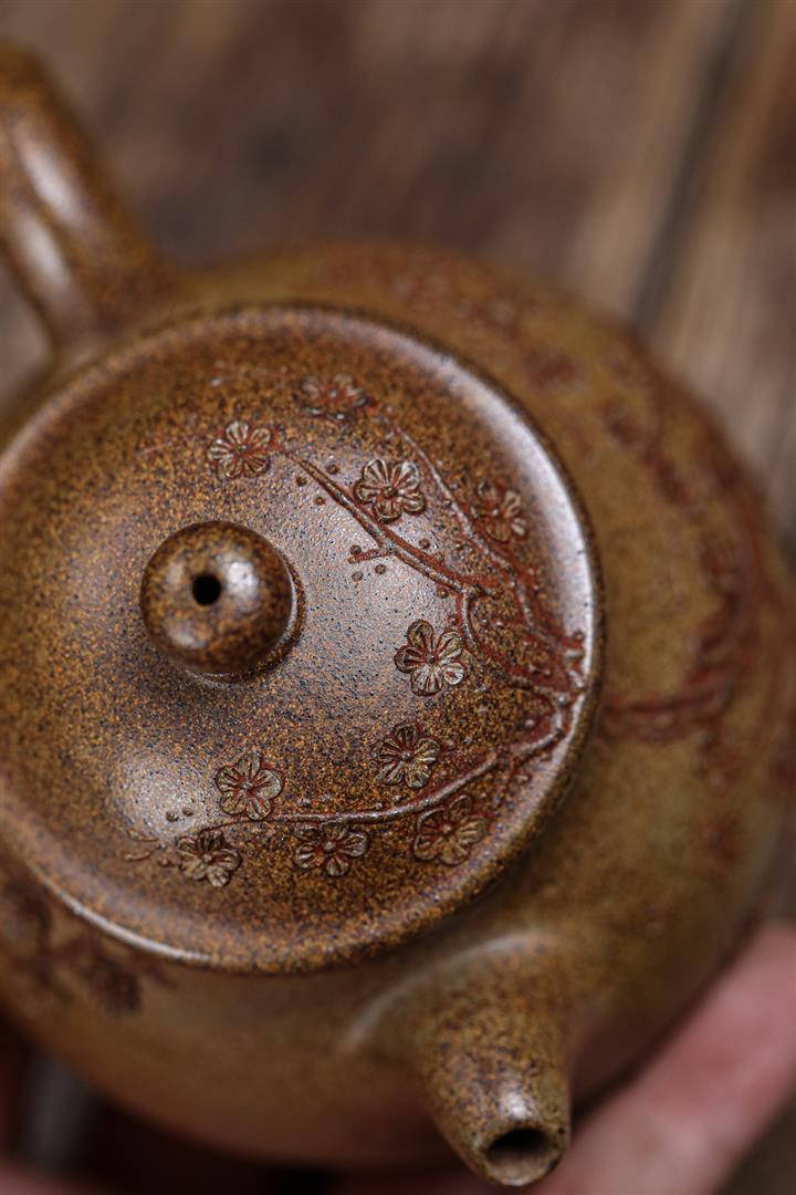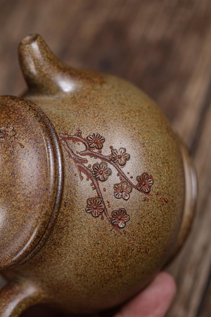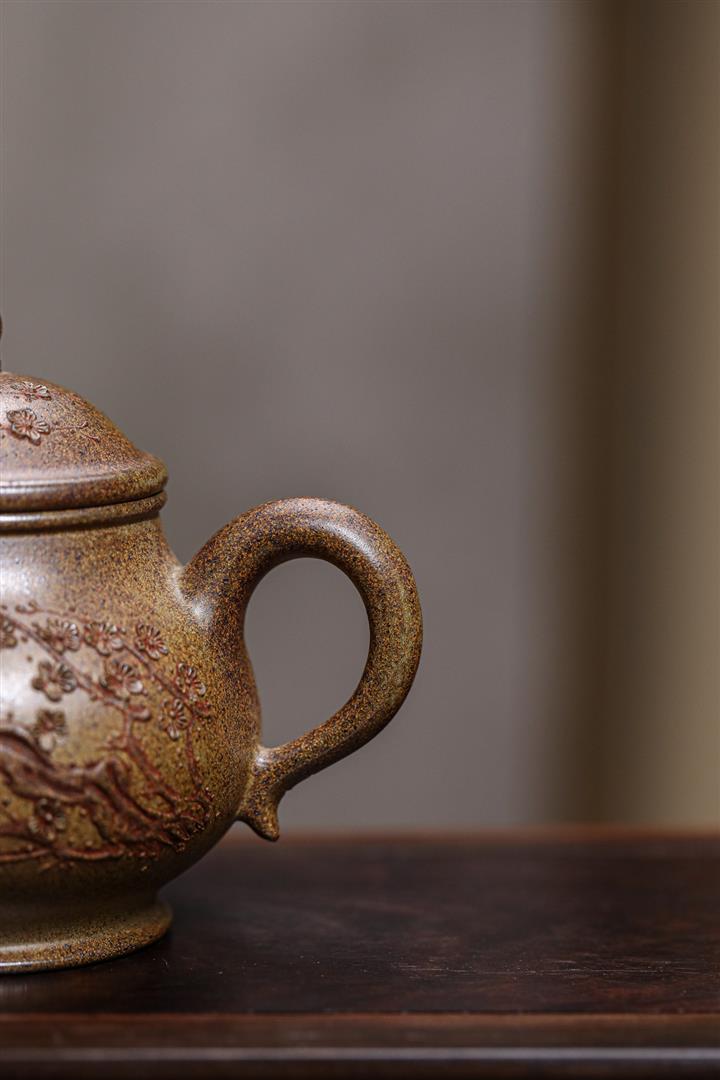 原礦紫砂君子蘭刻繪漢鐸茶壺POT7517