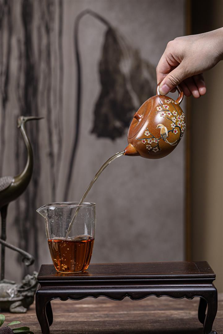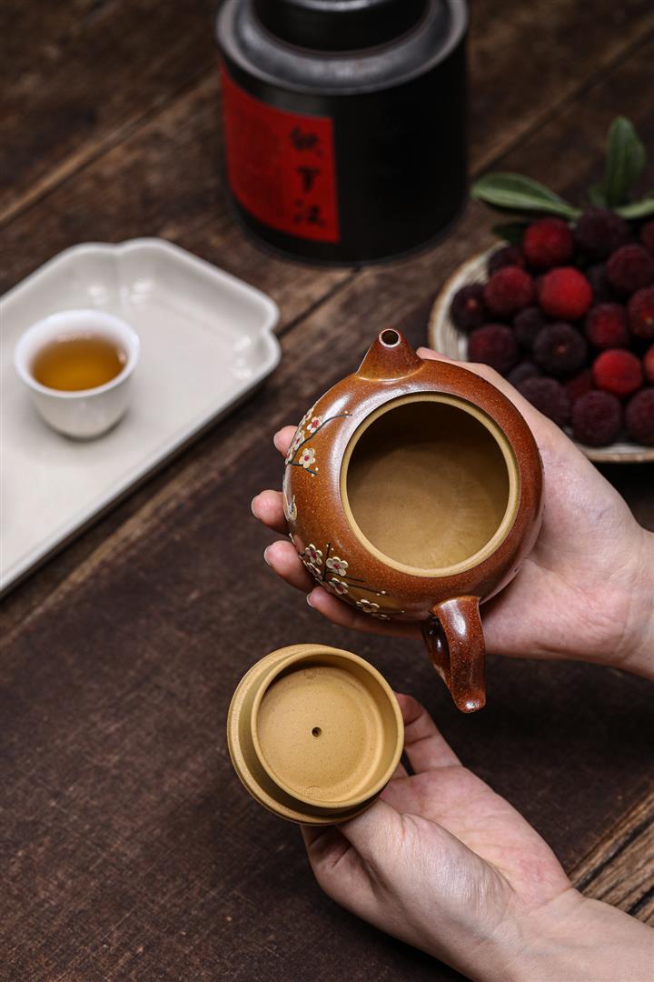 紫砂使用越久,壺身色澤越發光亮照人,氣韻溫雅。紫砂壺長久使用器身會因撫摸擦拭,變得越發溫潤光澤!