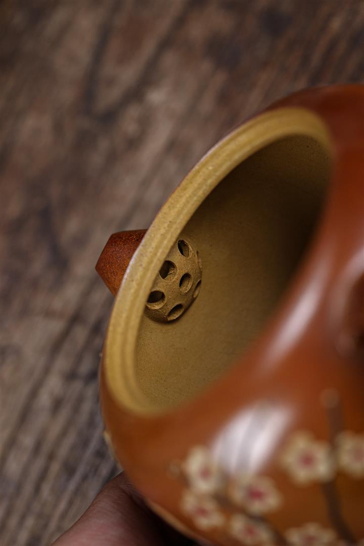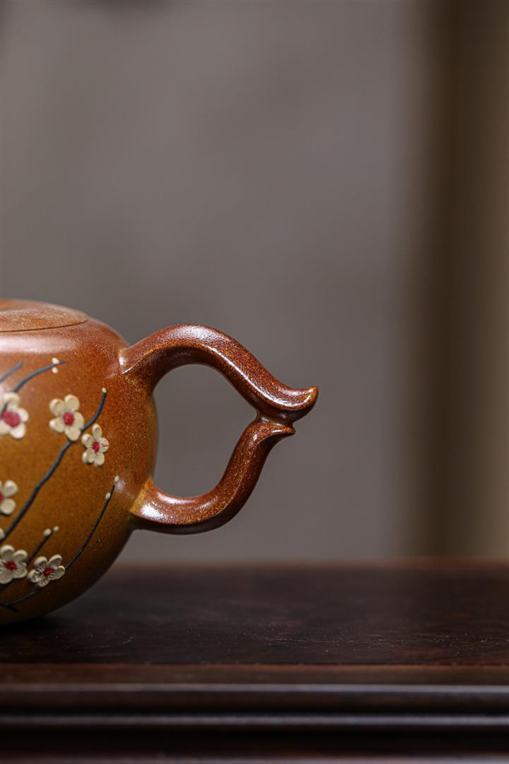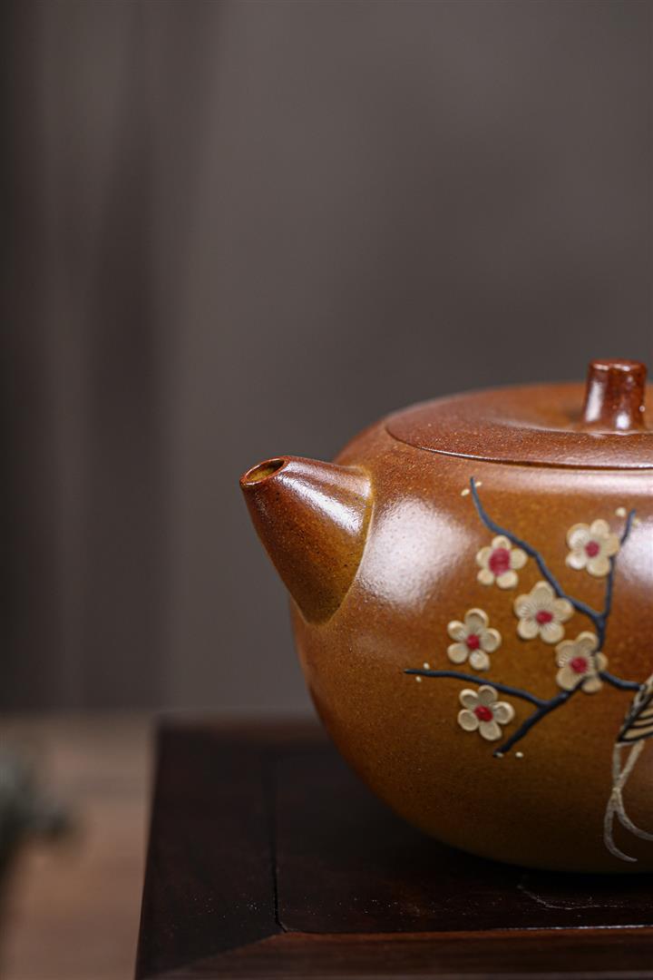 原礦紫砂君子蘭刻繪漢鐸茶壺POT7517
