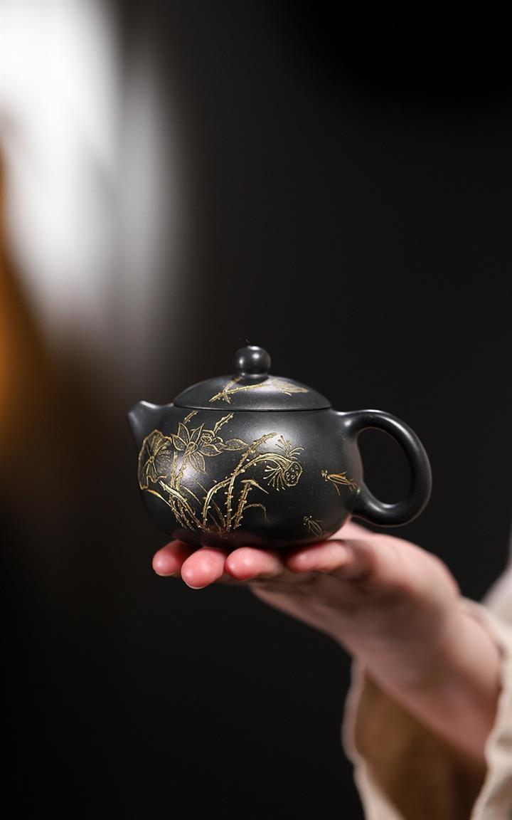 原礦紫砂君子蘭刻繪西施壺 POT7518