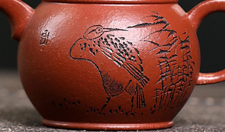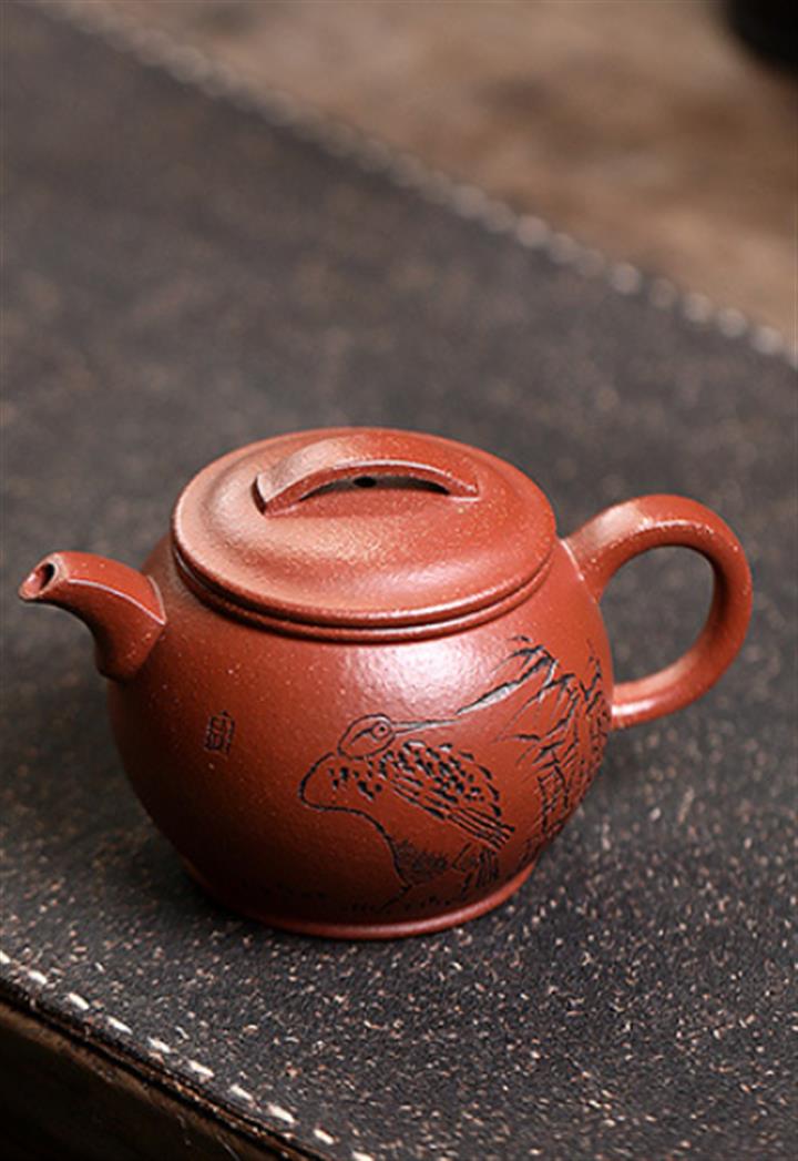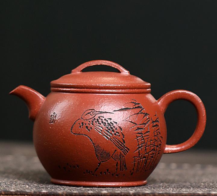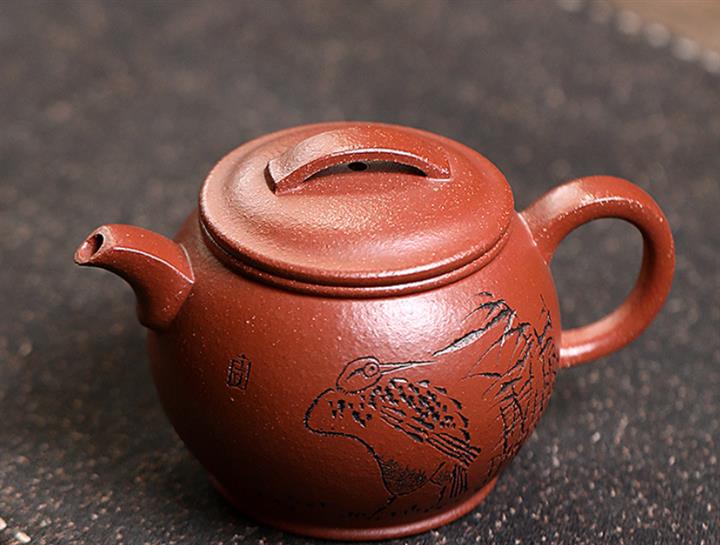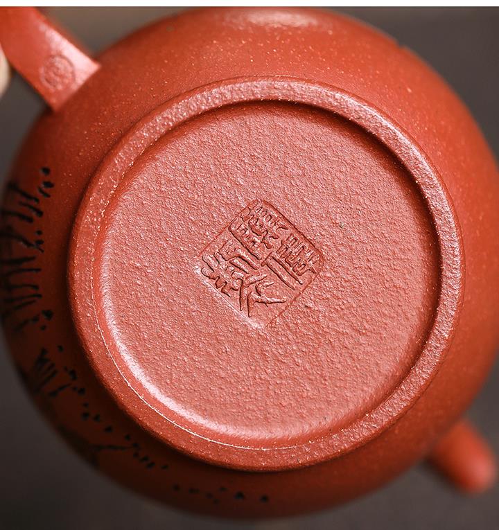 原礦大紅袍刻竹靜心德鐘茶壺POT7532