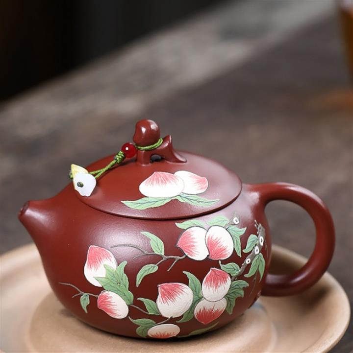 原礦紫泥泥繪暗香如意茶壺POT7531