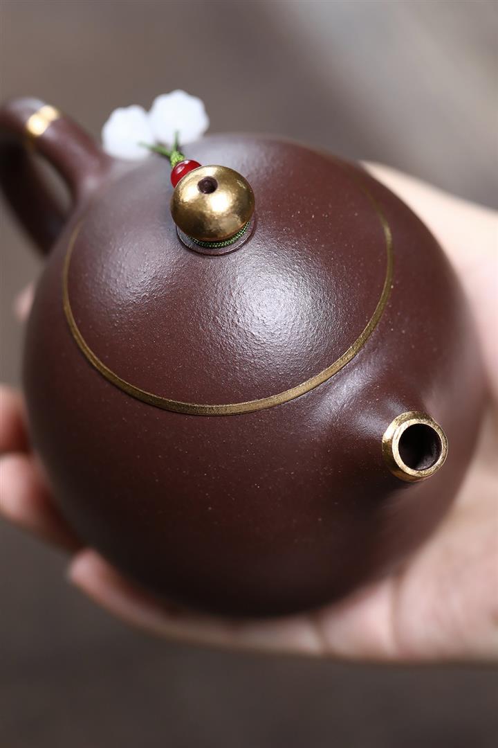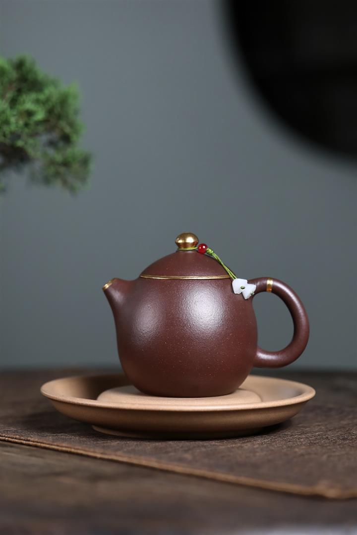 原礦紫泥泥繪暗香如意茶壺POT7531