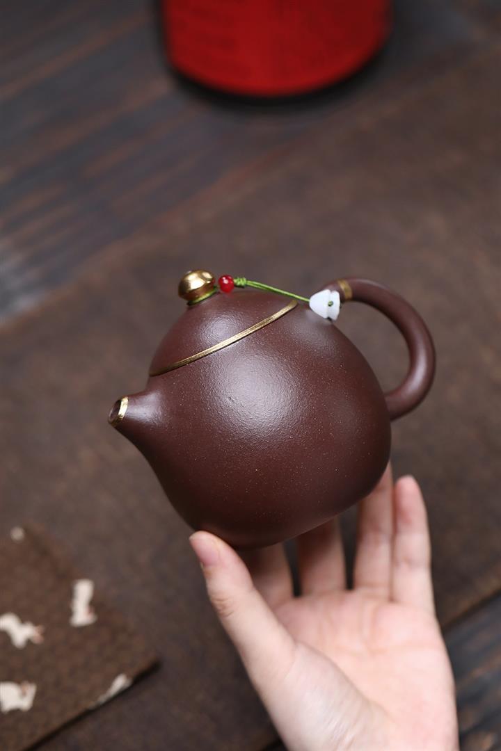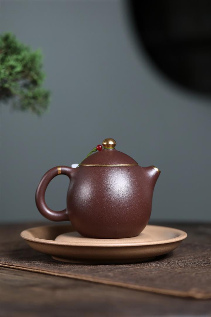 原礦粗砂紫泥描金龍蛋茶壺POT7530